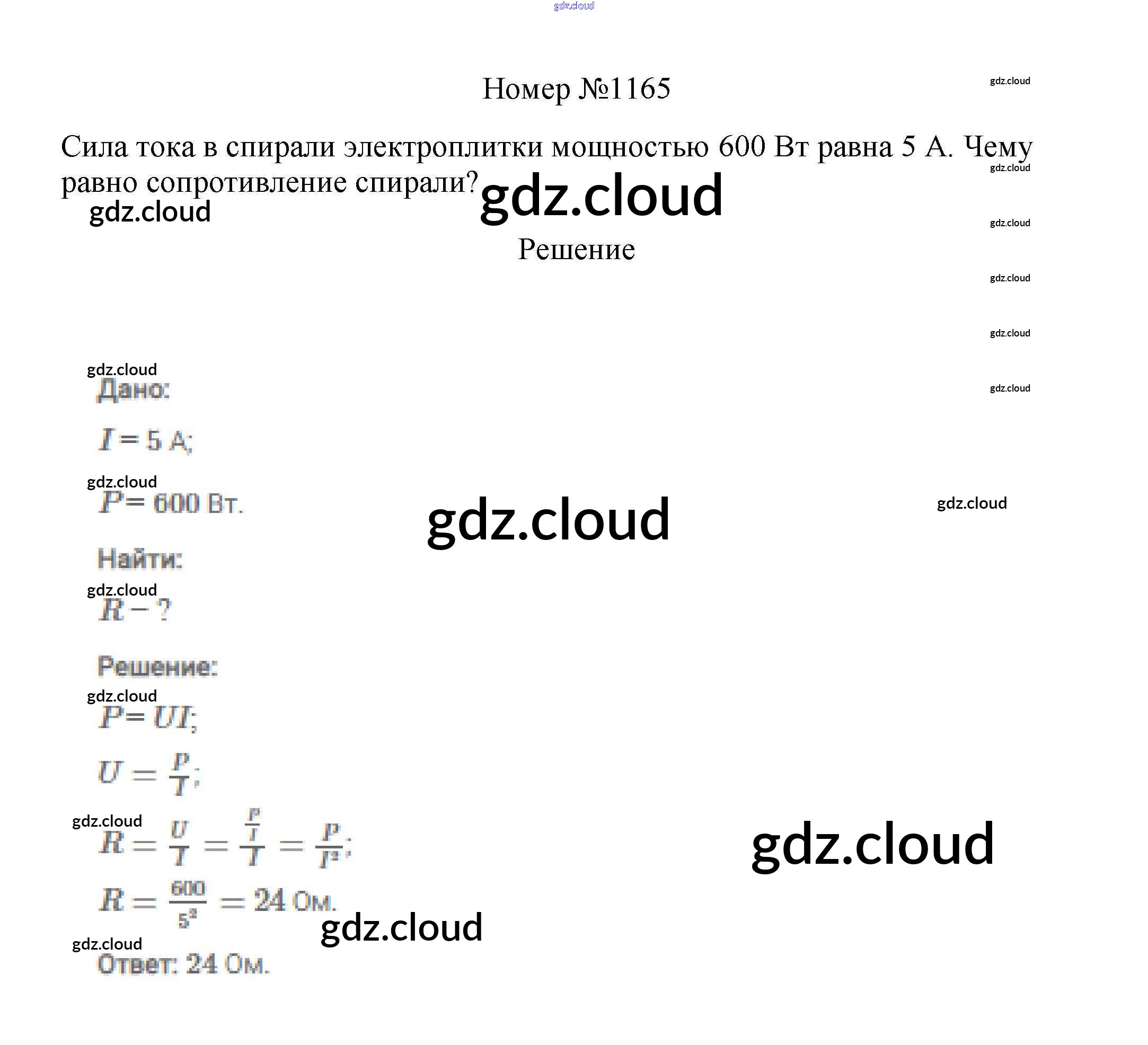 Ответ на задание 1165 Сборник вопросов и задач Физика за 7, 8, 9 (седьмой, восьмой, девятый) класс Марон, Позойский Вертикаль 2013