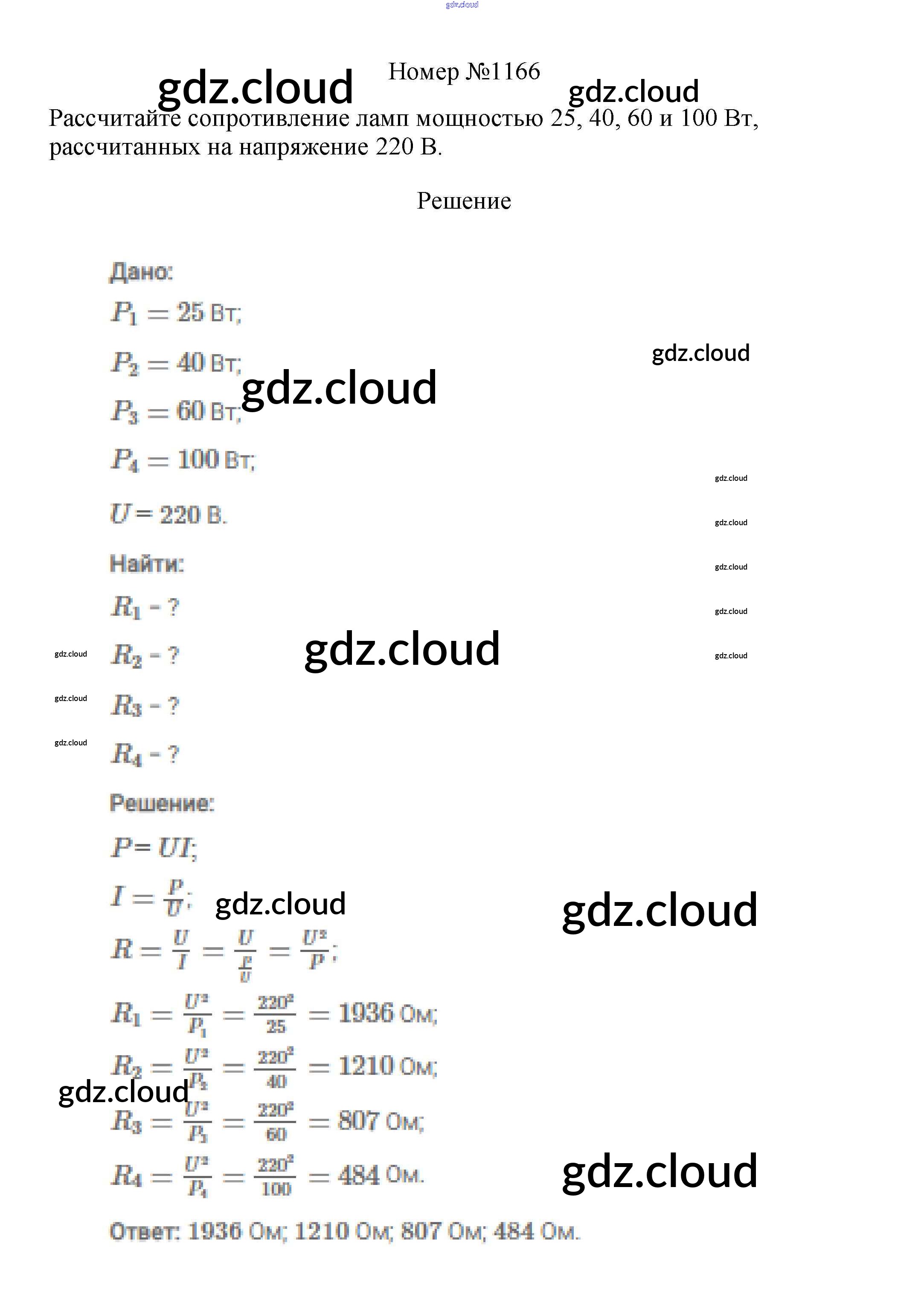 Ответ на задание 1166 Сборник вопросов и задач Физика за 7, 8, 9 (седьмой, восьмой, девятый) класс Марон, Позойский Вертикаль 2013