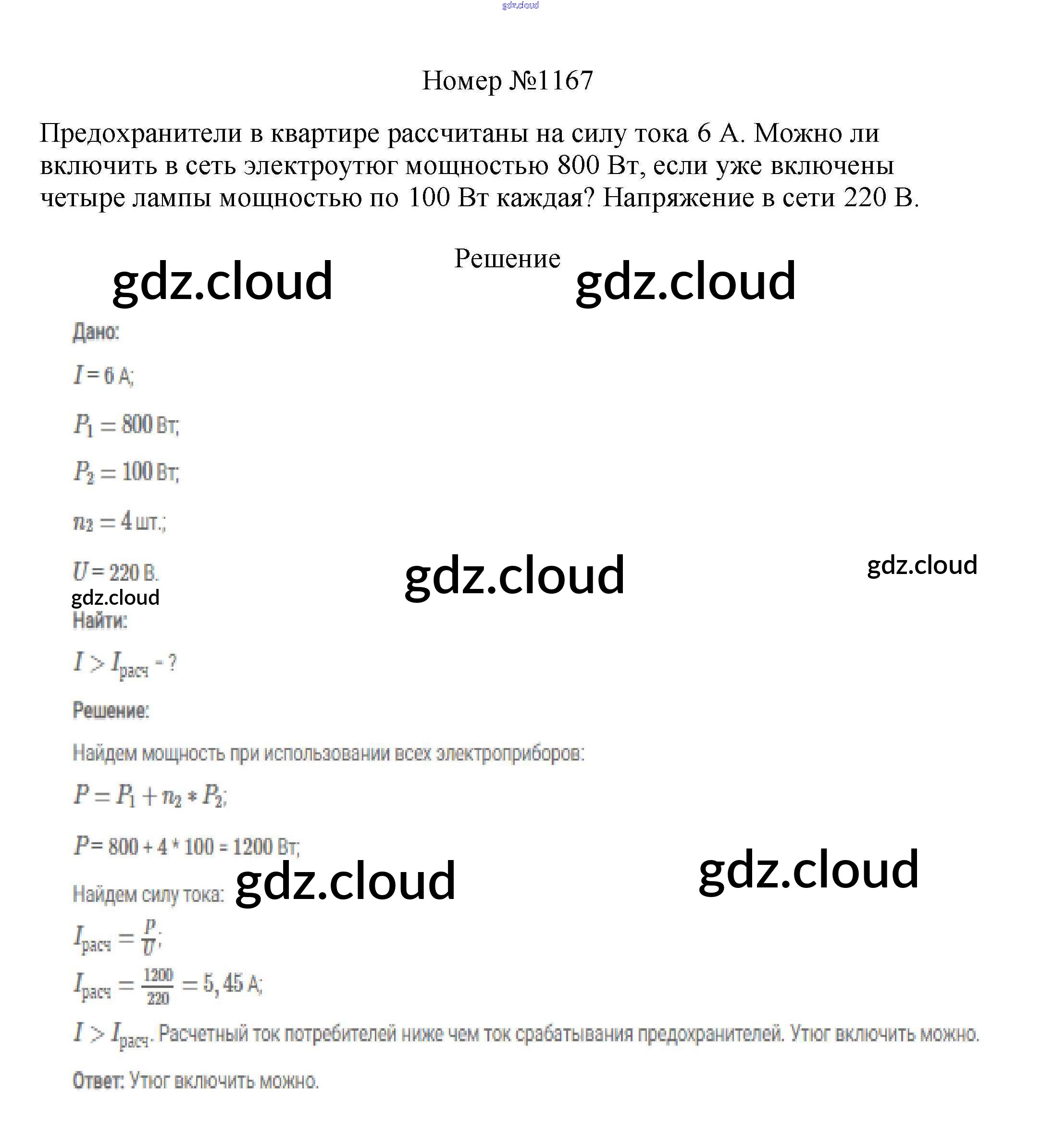 Ответ на задание 1167 Сборник вопросов и задач Физика за 7, 8, 9 (седьмой, восьмой, девятый) класс Марон, Позойский Вертикаль 2013