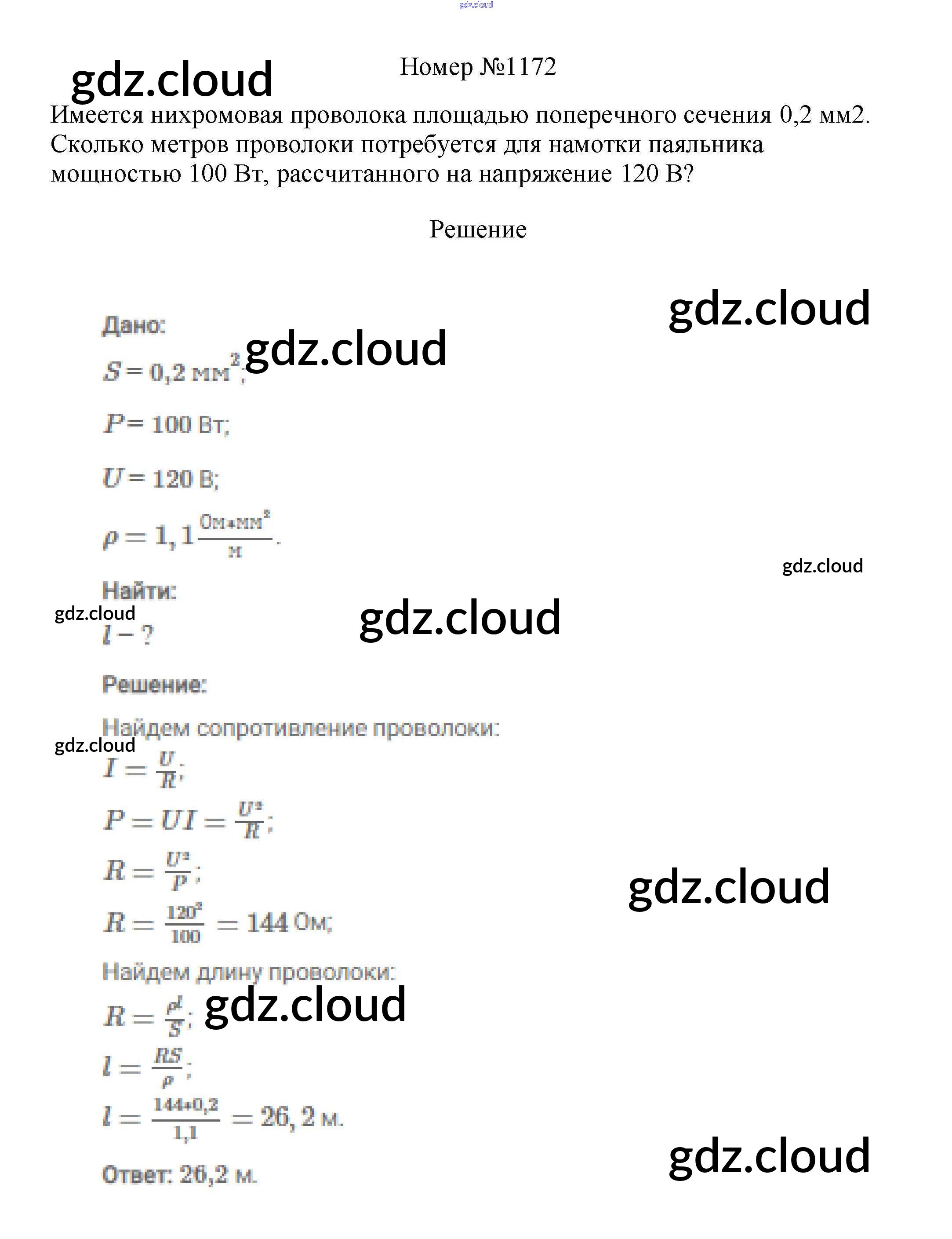 Ответ на задание 1172 Сборник вопросов и задач Физика за 7, 8, 9 (седьмой, восьмой, девятый) класс Марон, Позойский Вертикаль 2013