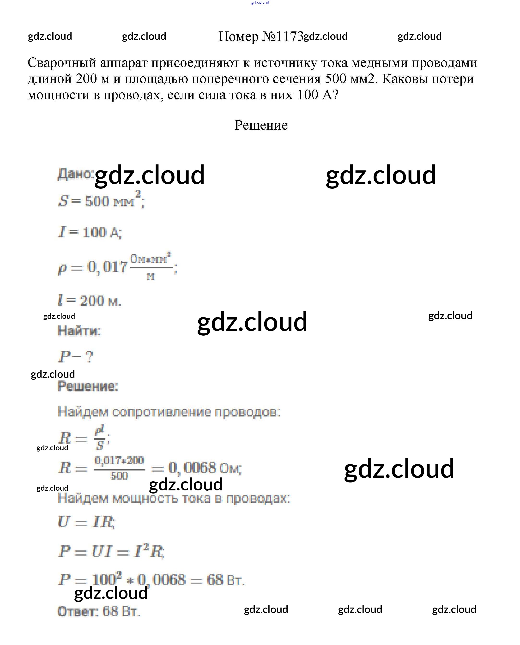 Ответ на задание 1173 Сборник вопросов и задач Физика за 7, 8, 9 (седьмой, восьмой, девятый) класс Марон, Позойский Вертикаль 2013