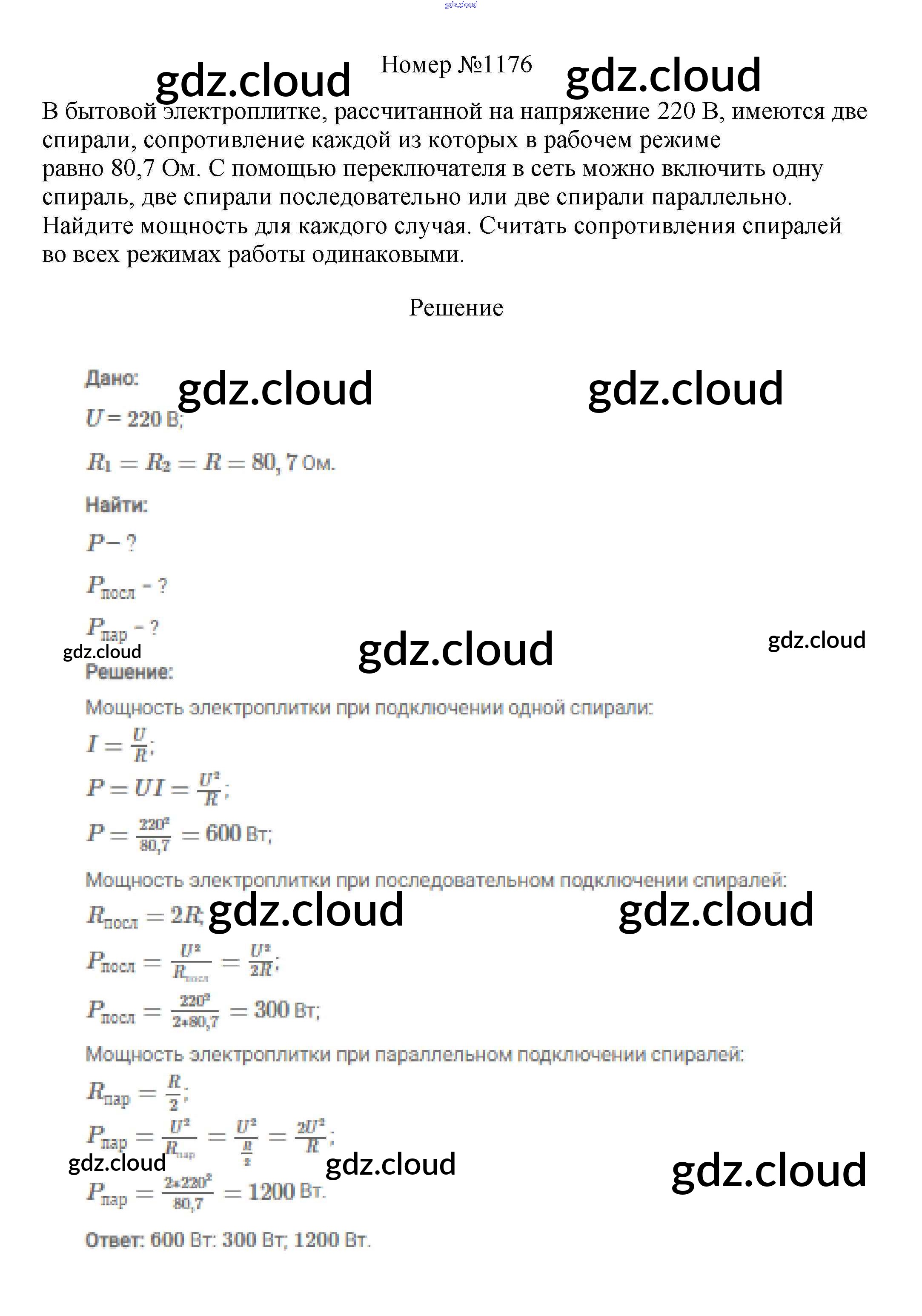 Ответ на задание 1176 Сборник вопросов и задач Физика за 7, 8, 9 (седьмой, восьмой, девятый) класс Марон, Позойский Вертикаль 2013