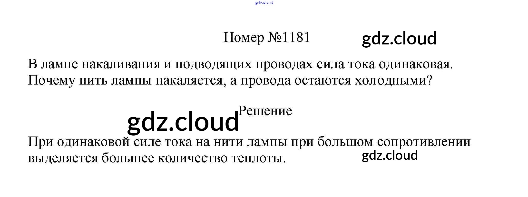 Ответ на задание 1181 Сборник вопросов и задач Физика за 7, 8, 9 (седьмой, восьмой, девятый) класс Марон, Позойский Вертикаль 2013