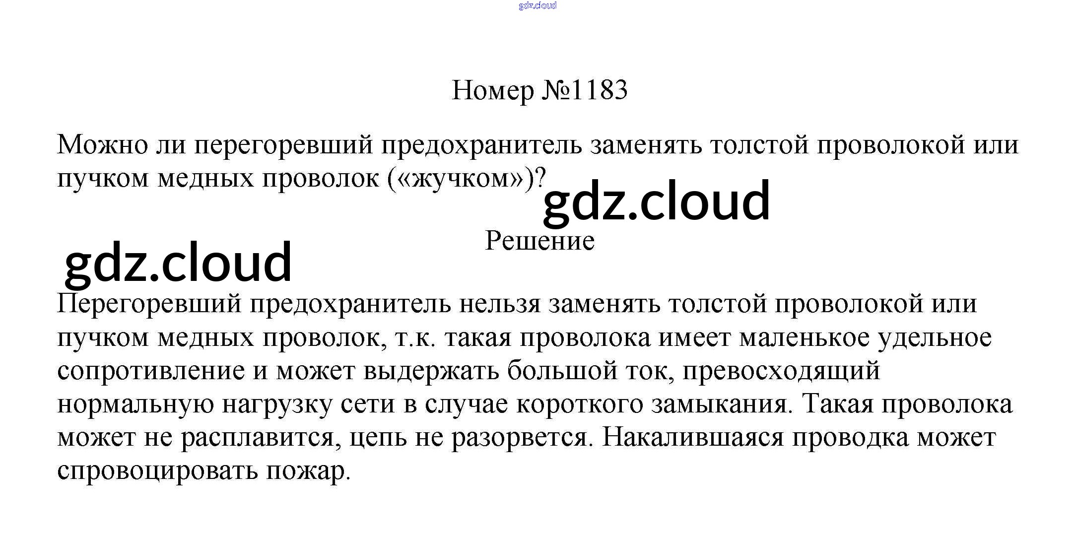 Ответ на задание 1183 Сборник вопросов и задач Физика за 7, 8, 9 (седьмой, восьмой, девятый) класс Марон, Позойский Вертикаль 2013