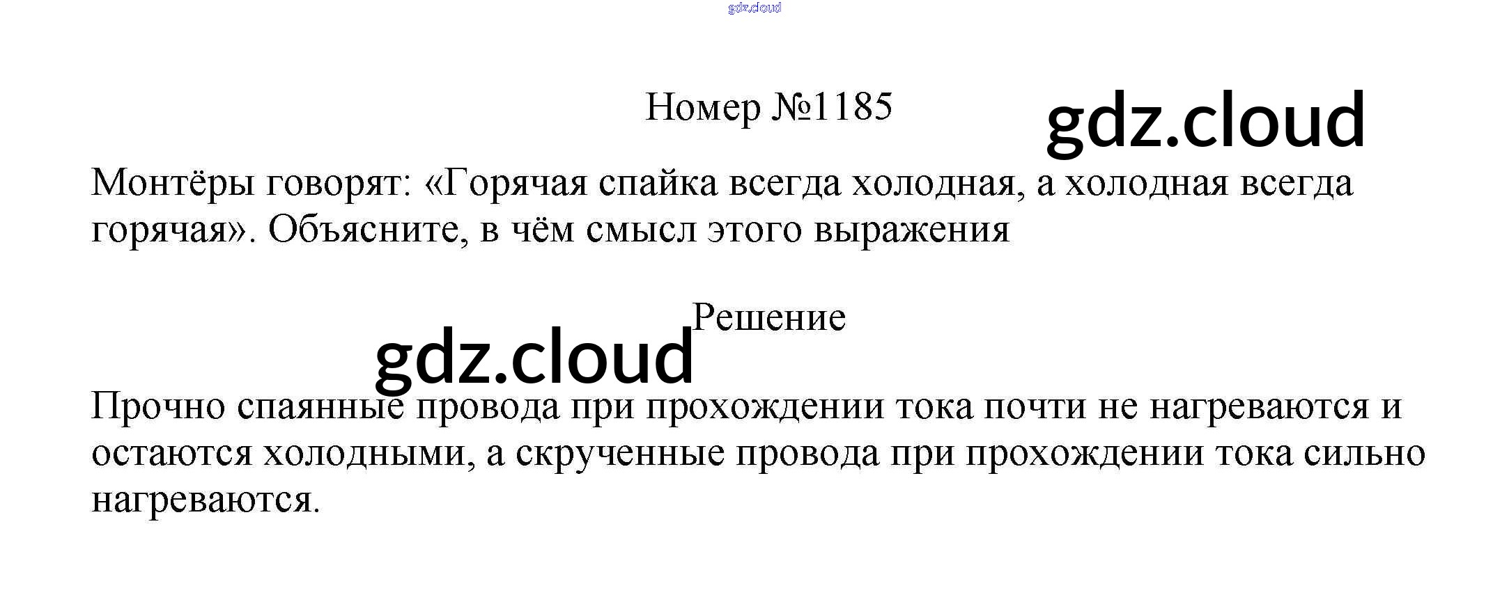 Ответ на задание 1185 Сборник вопросов и задач Физика за 7, 8, 9 (седьмой, восьмой, девятый) класс Марон, Позойский Вертикаль 2013