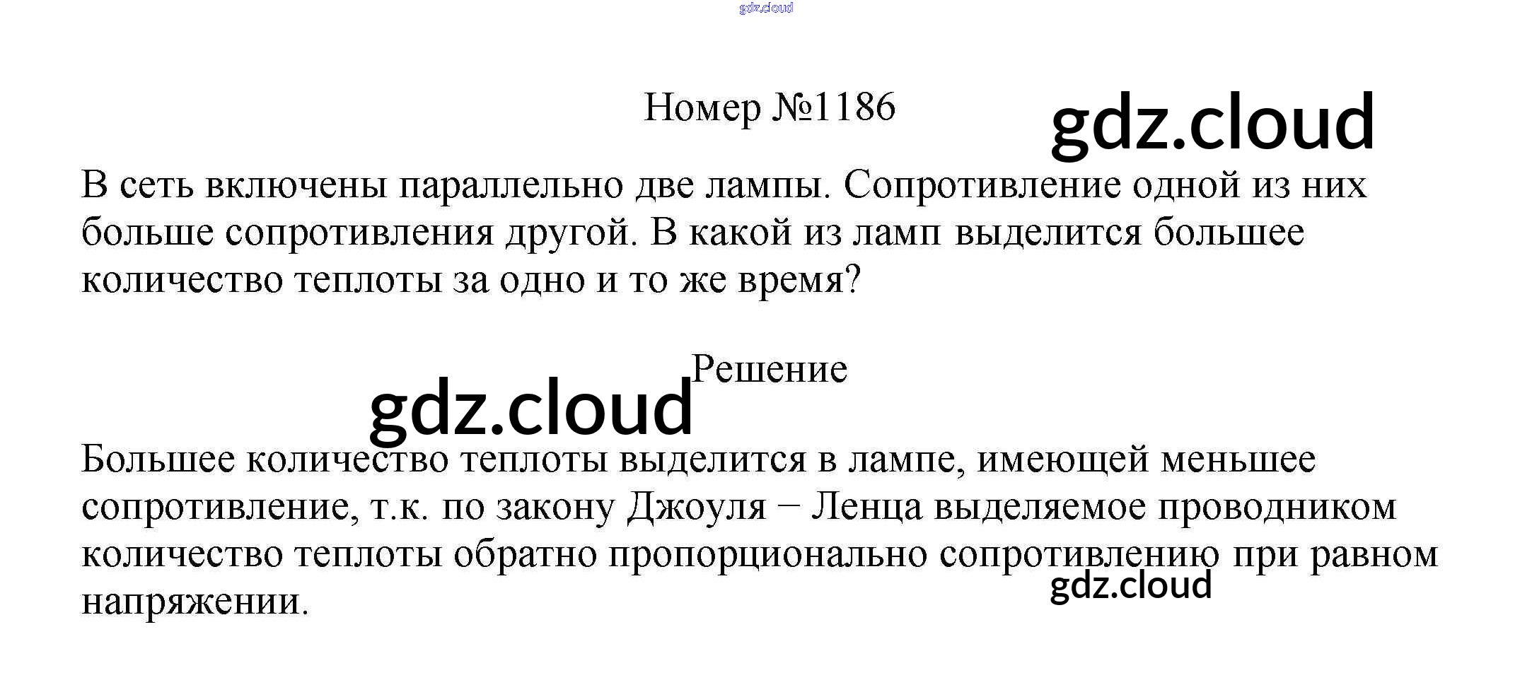 Ответ на задание 1186 Сборник вопросов и задач Физика за 7, 8, 9 (седьмой, восьмой, девятый) класс Марон, Позойский Вертикаль 2013
