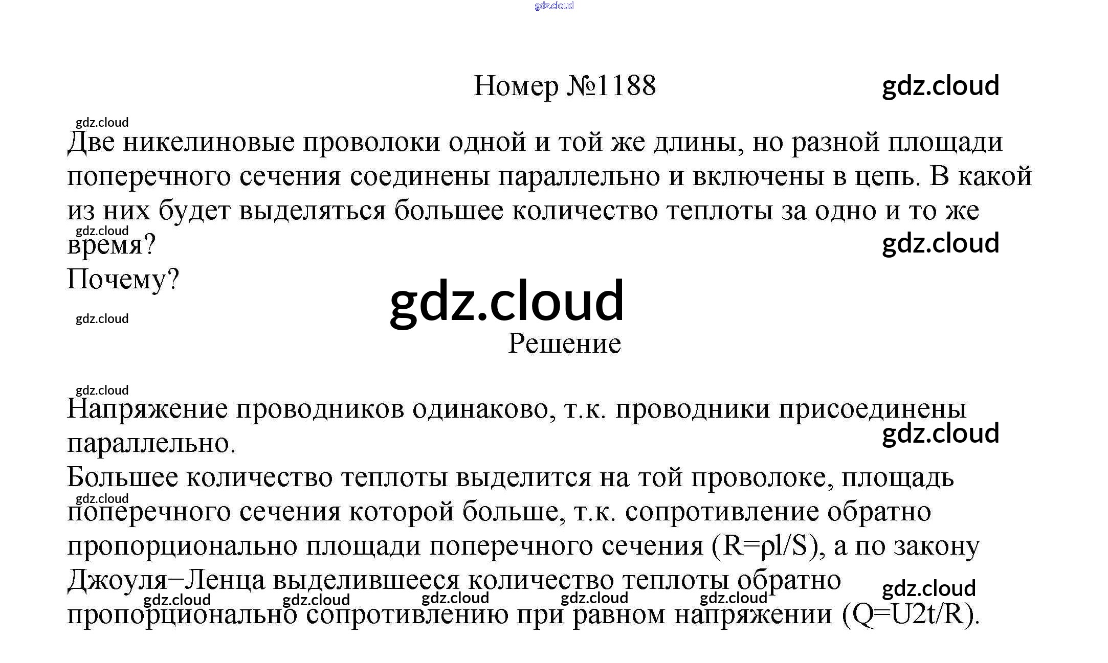 Ответ на задание 1188 Сборник вопросов и задач Физика за 7, 8, 9 (седьмой, восьмой, девятый) класс Марон, Позойский Вертикаль 2013