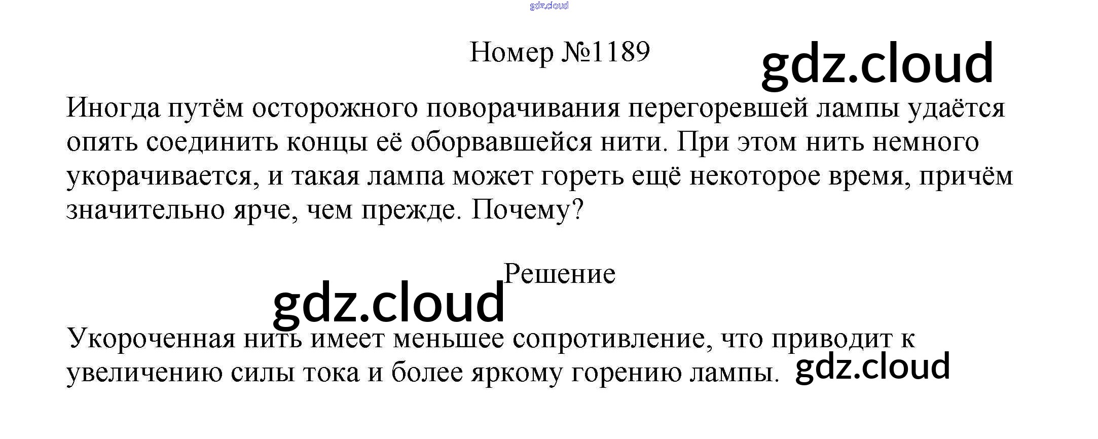 Ответ на задание 1189 Сборник вопросов и задач Физика за 7, 8, 9 (седьмой, восьмой, девятый) класс Марон, Позойский Вертикаль 2013