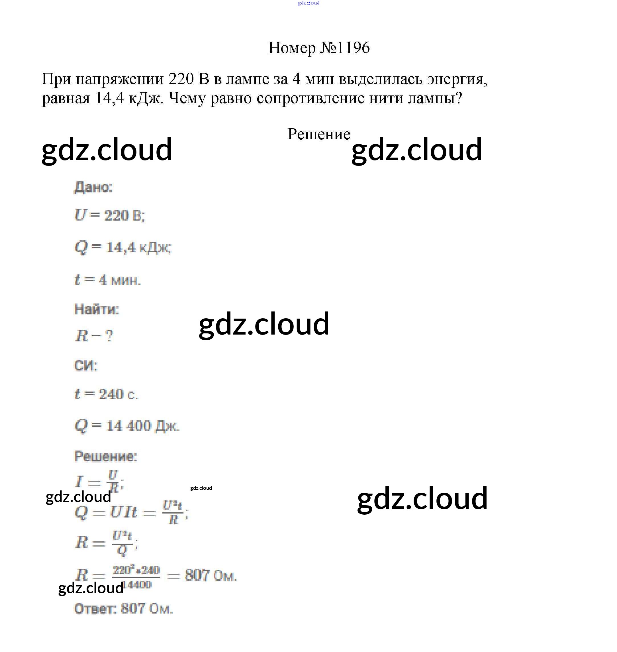 Ответ на задание 1196 Сборник вопросов и задач Физика за 7, 8, 9 (седьмой, восьмой, девятый) класс Марон, Позойский Вертикаль 2013