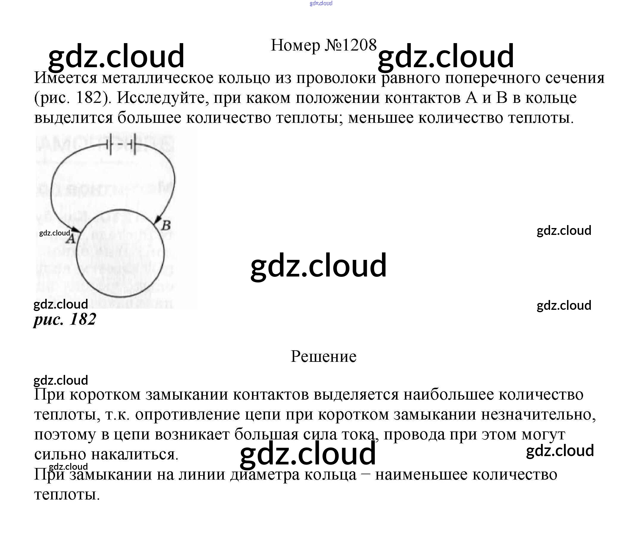 Ответ на задание 1208 Сборник вопросов и задач Физика за 7, 8, 9 (седьмой, восьмой, девятый) класс Марон, Позойский Вертикаль 2013