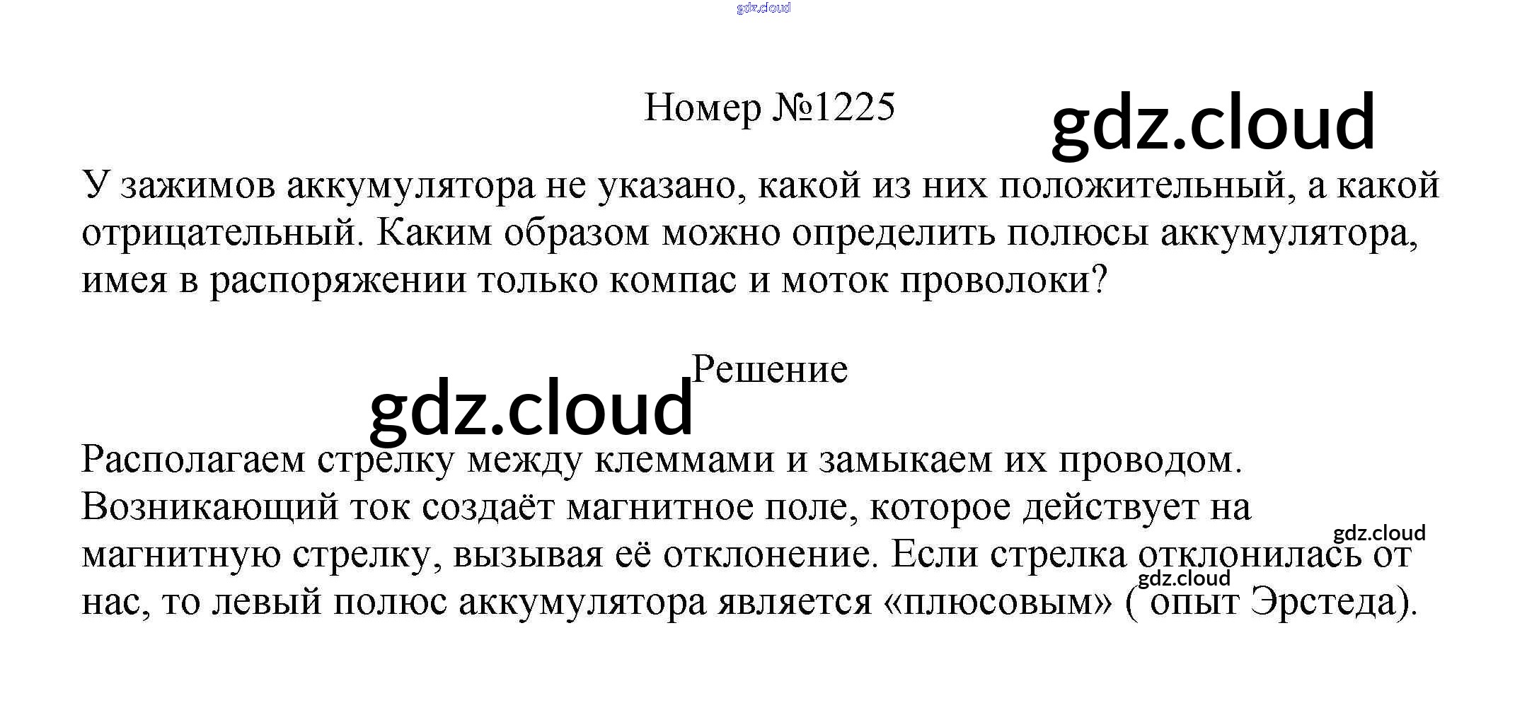Ответ на задание 1225 Сборник вопросов и задач Физика за 7, 8, 9 (седьмой, восьмой, девятый) класс Марон, Позойский Вертикаль 2013