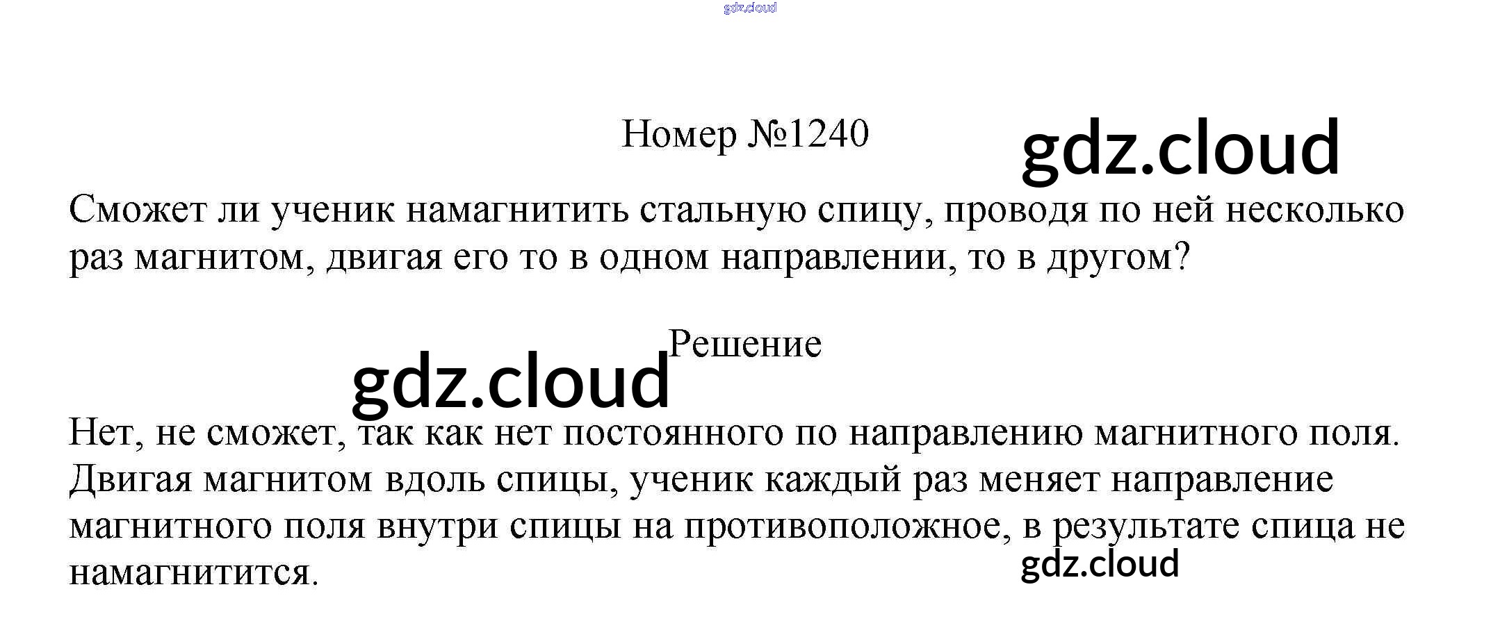 Ответ на задание 1240 Сборник вопросов и задач Физика за 7, 8, 9 (седьмой, восьмой, девятый) класс Марон, Позойский Вертикаль 2013