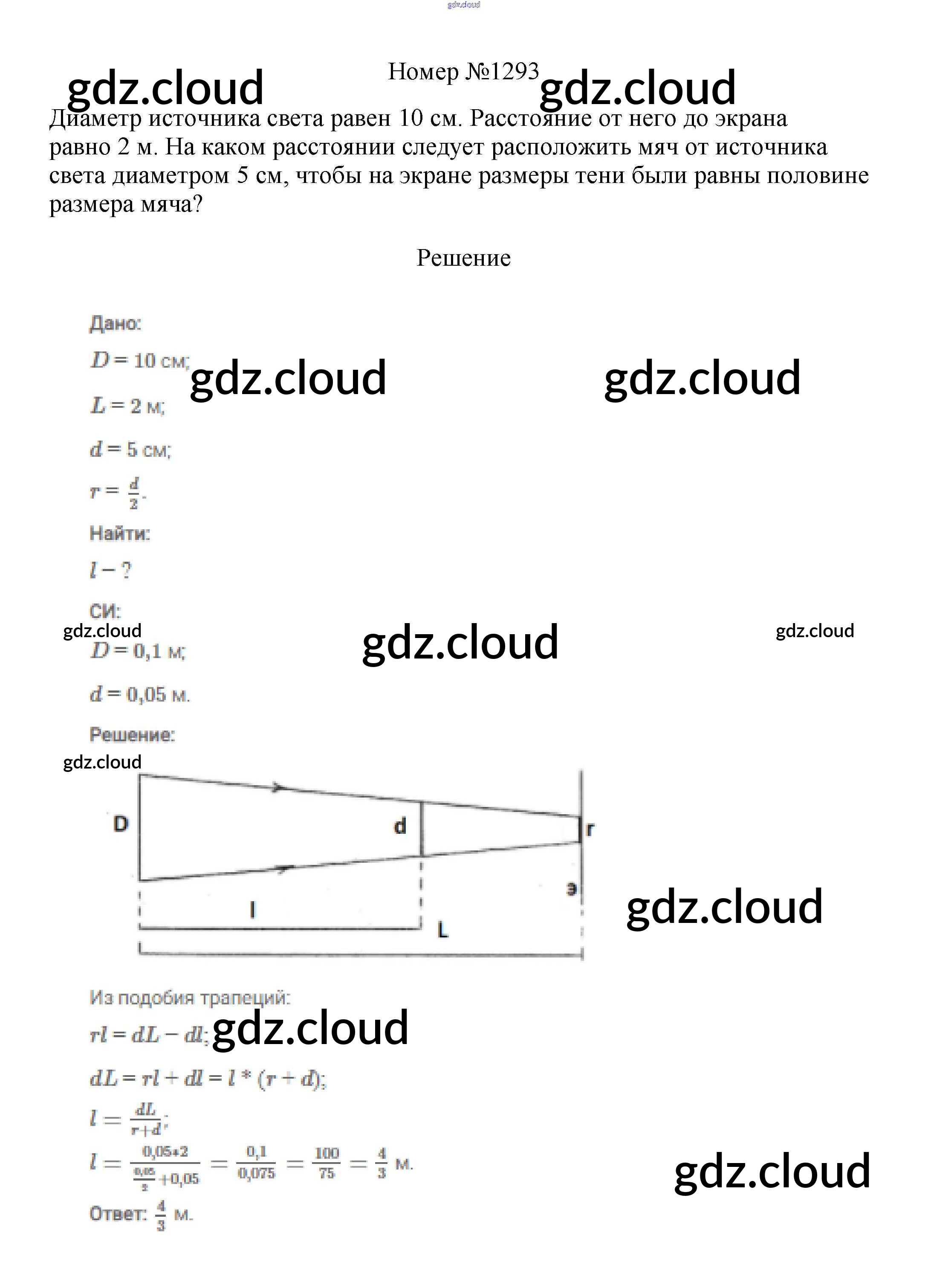 Ответ на задание 1293 Сборник вопросов и задач Физика за 7, 8, 9 (седьмой, восьмой, девятый) класс Марон, Позойский Вертикаль 2013