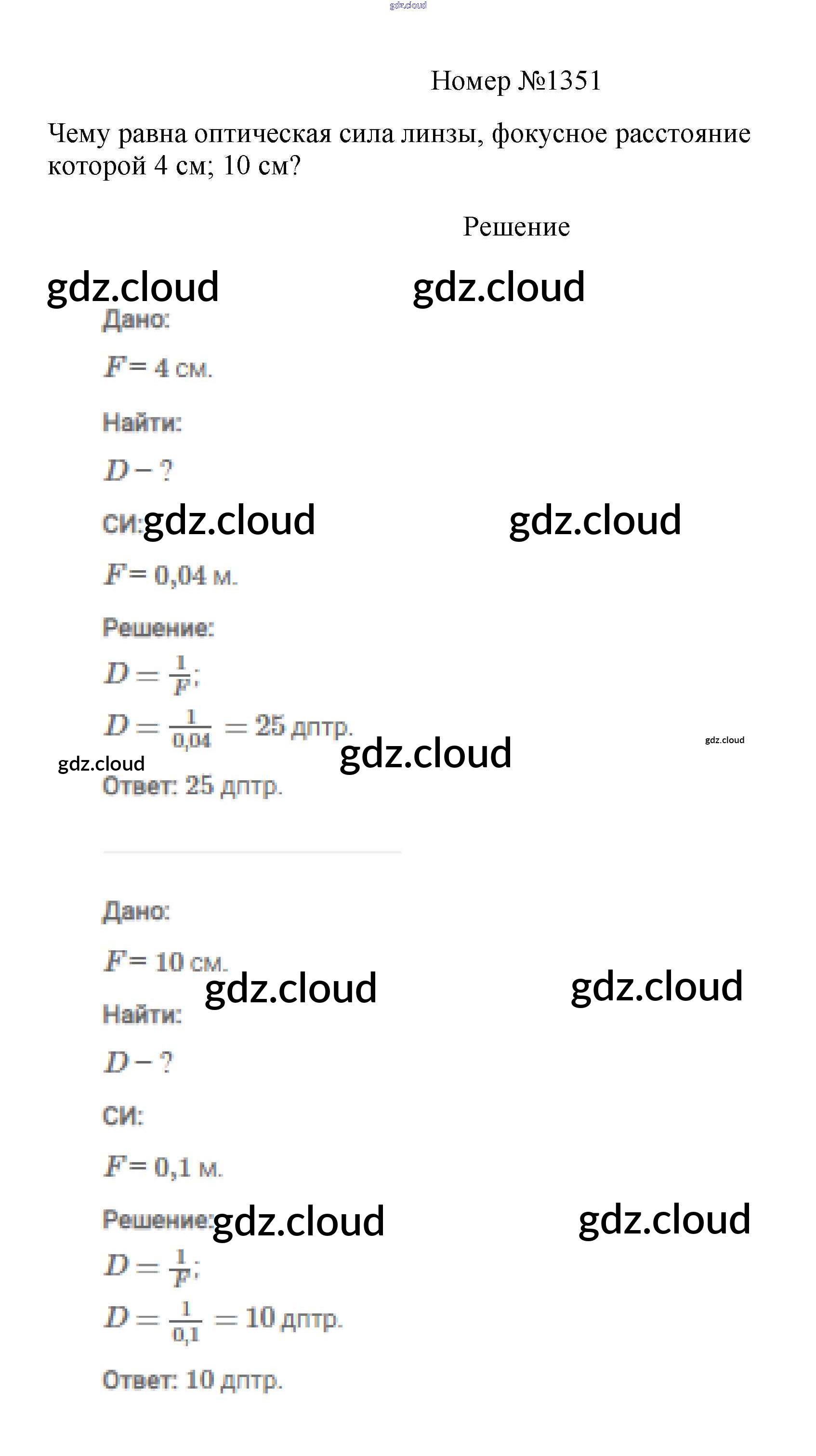 Ответ на задание 1351 Сборник вопросов и задач Физика за 7, 8, 9 (седьмой, восьмой, девятый) класс Марон, Позойский Вертикаль 2013