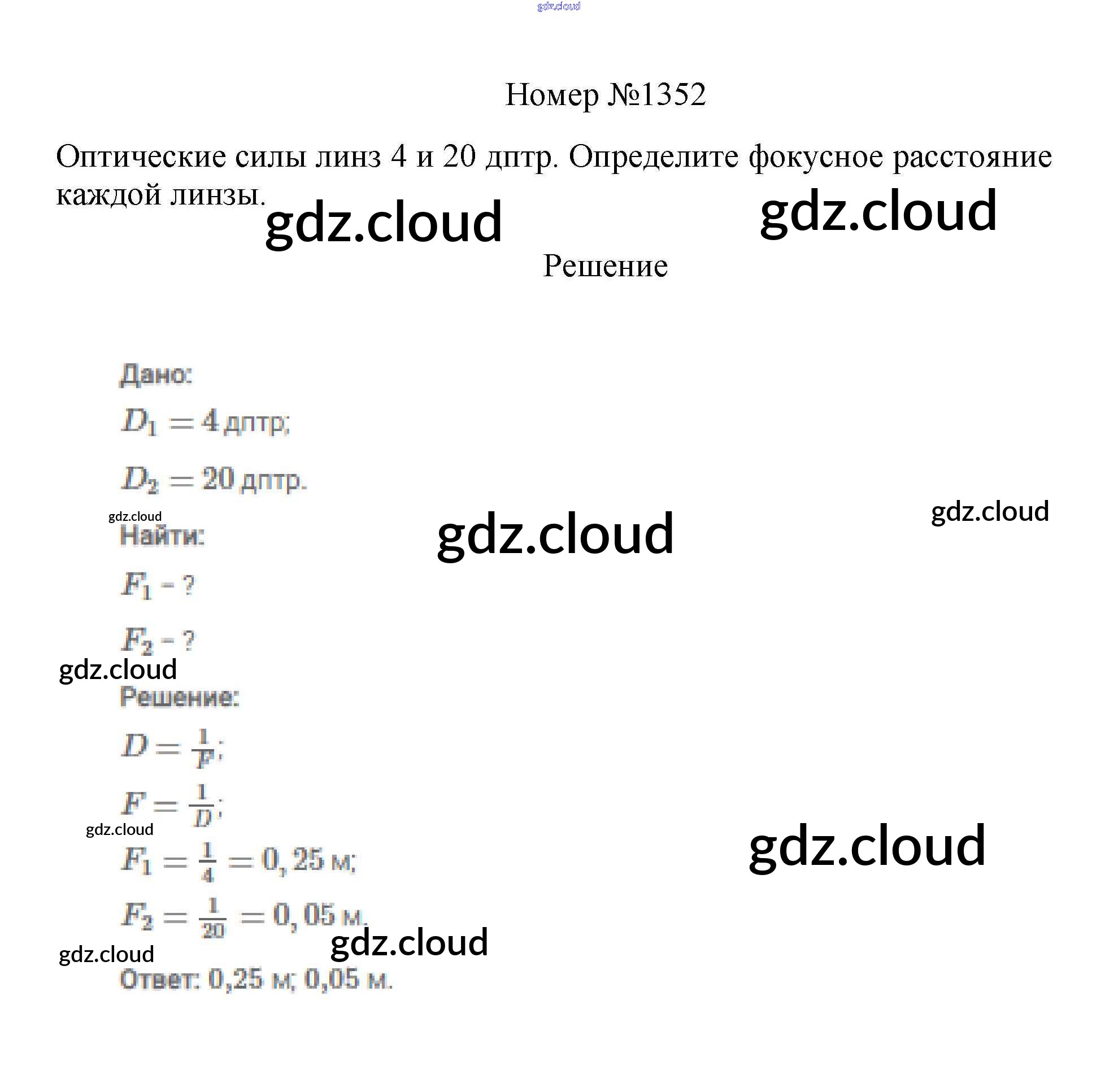 Ответ на задание 1352 Сборник вопросов и задач Физика за 7, 8, 9 (седьмой, восьмой, девятый) класс Марон, Позойский Вертикаль 2013