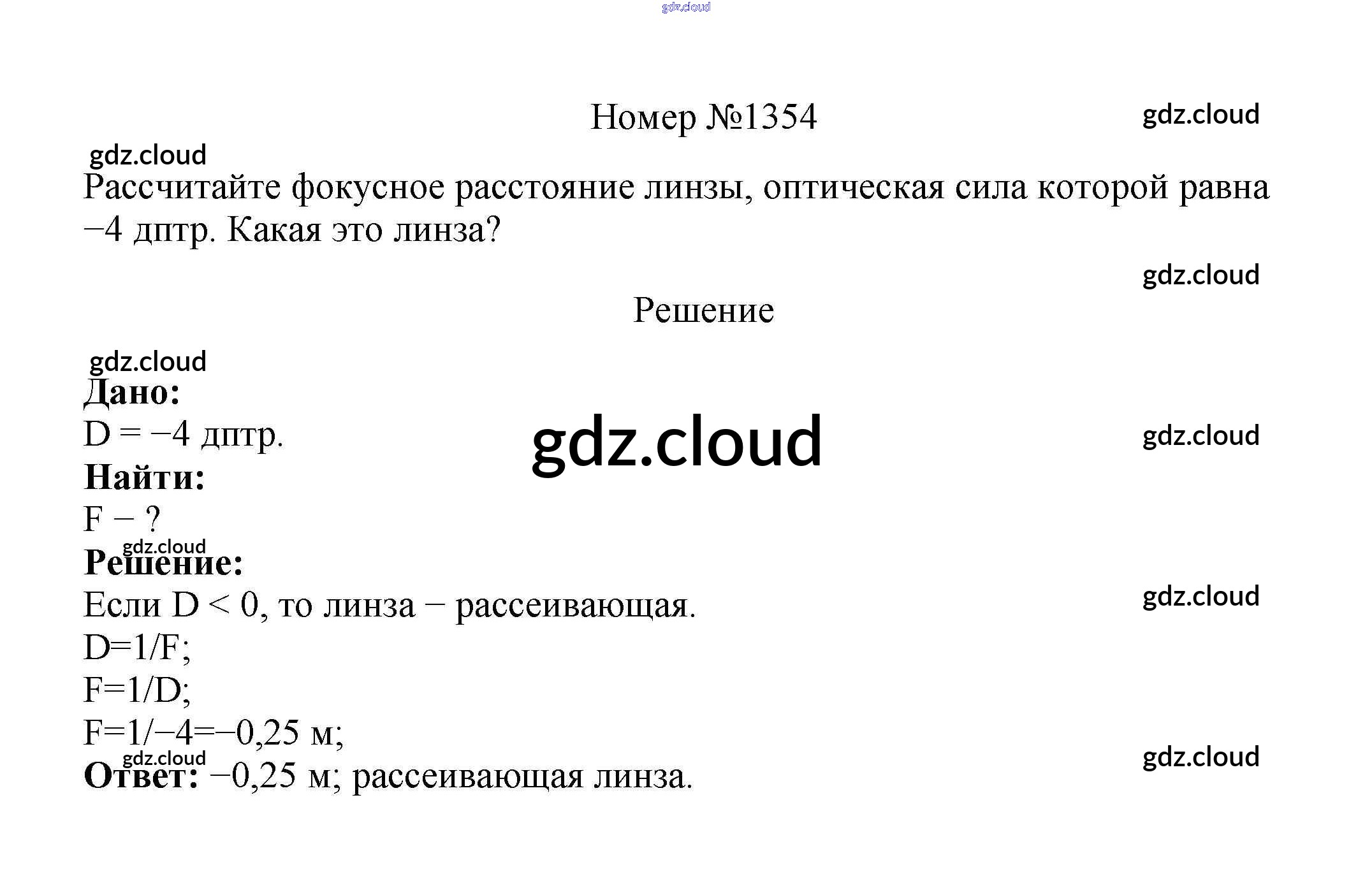 Ответ на задание 1354 Сборник вопросов и задач Физика за 7, 8, 9 (седьмой, восьмой, девятый) класс Марон, Позойский Вертикаль 2013