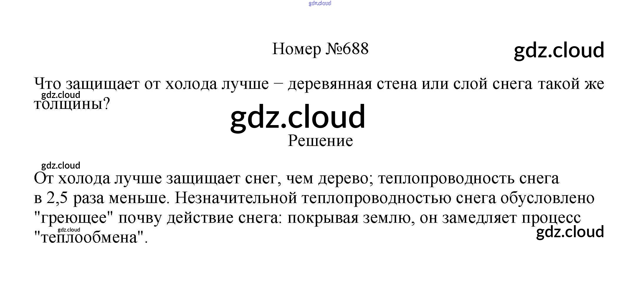 Ответ на задание 688 Сборник вопросов и задач Физика за 7, 8, 9 (седьмой, восьмой, девятый) класс Марон, Позойский Вертикаль 2013
