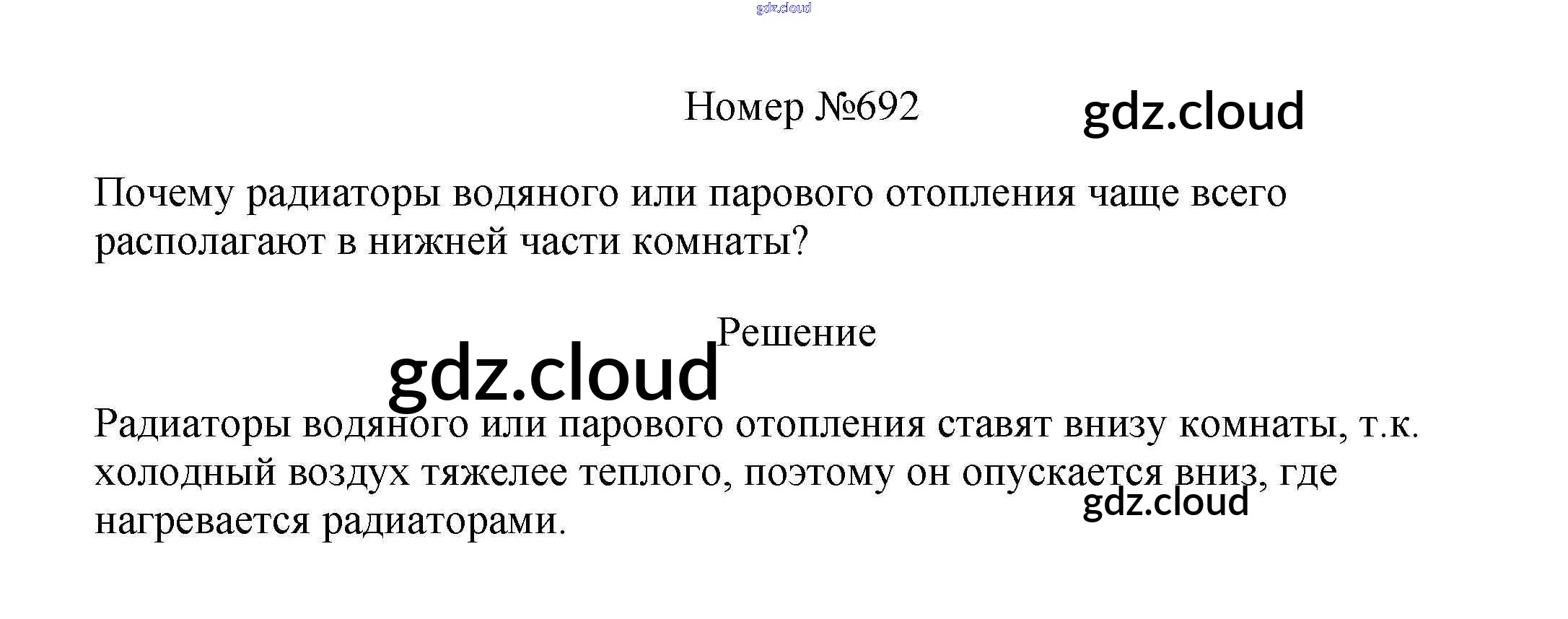 Ответ на задание 692 Сборник вопросов и задач Физика за 7, 8, 9 (седьмой, восьмой, девятый) класс Марон, Позойский Вертикаль 2013