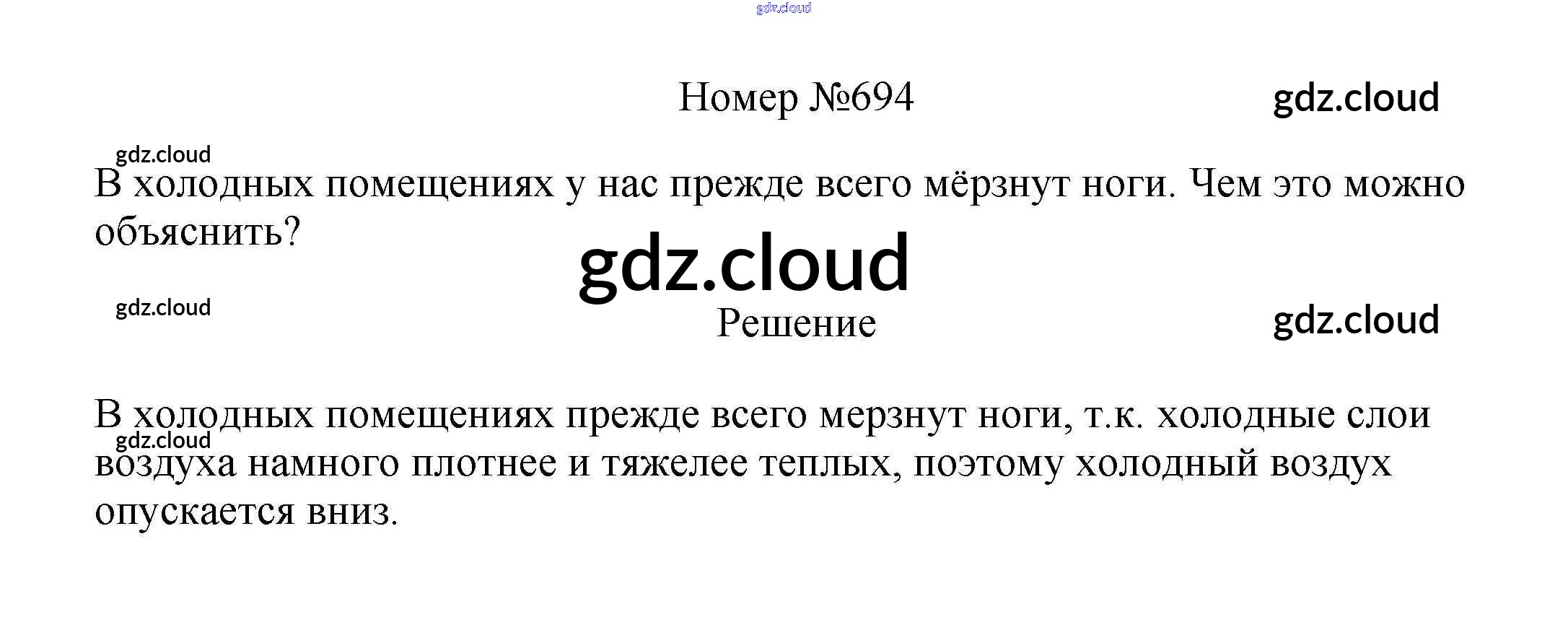 Ответ на задание 694 Сборник вопросов и задач Физика за 7, 8, 9 (седьмой, восьмой, девятый) класс Марон, Позойский Вертикаль 2013