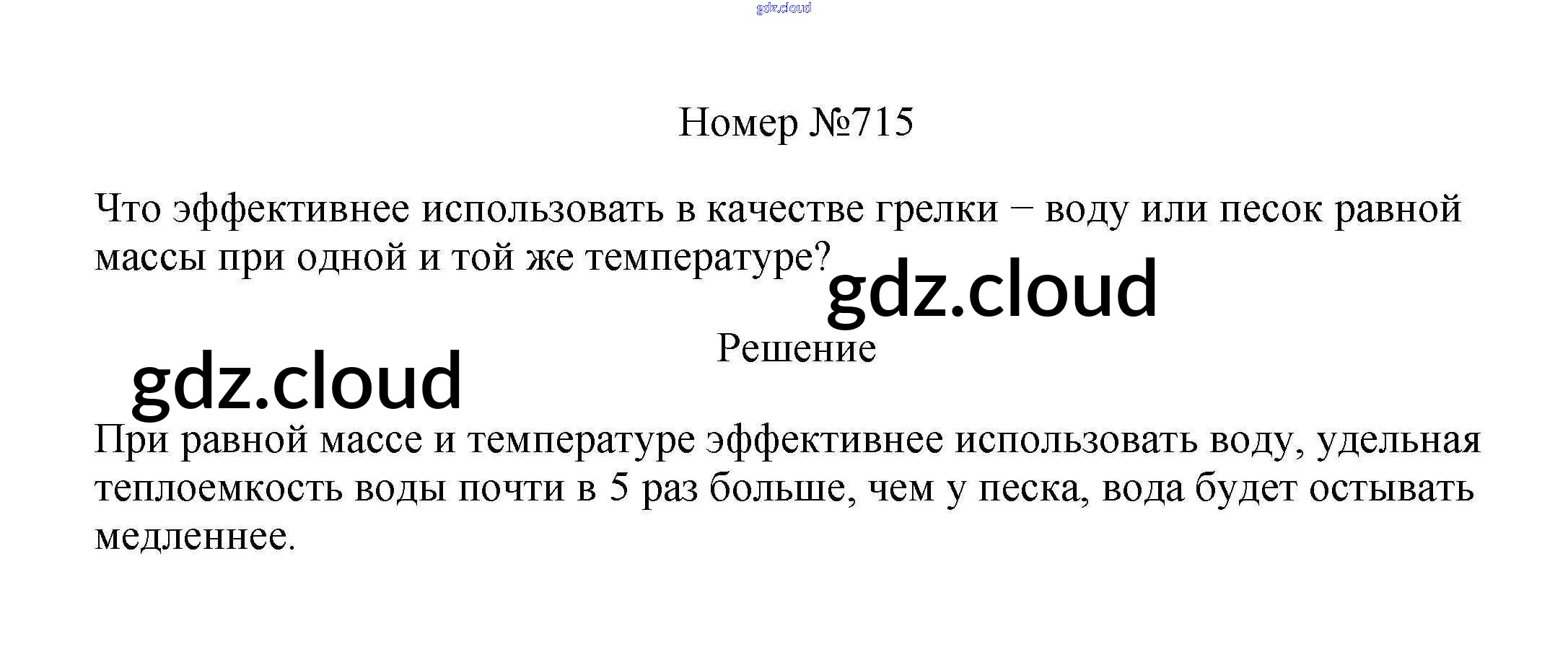 Ответ на задание 715 Сборник вопросов и задач Физика за 7, 8, 9 (седьмой, восьмой, девятый) класс Марон, Позойский Вертикаль 2013