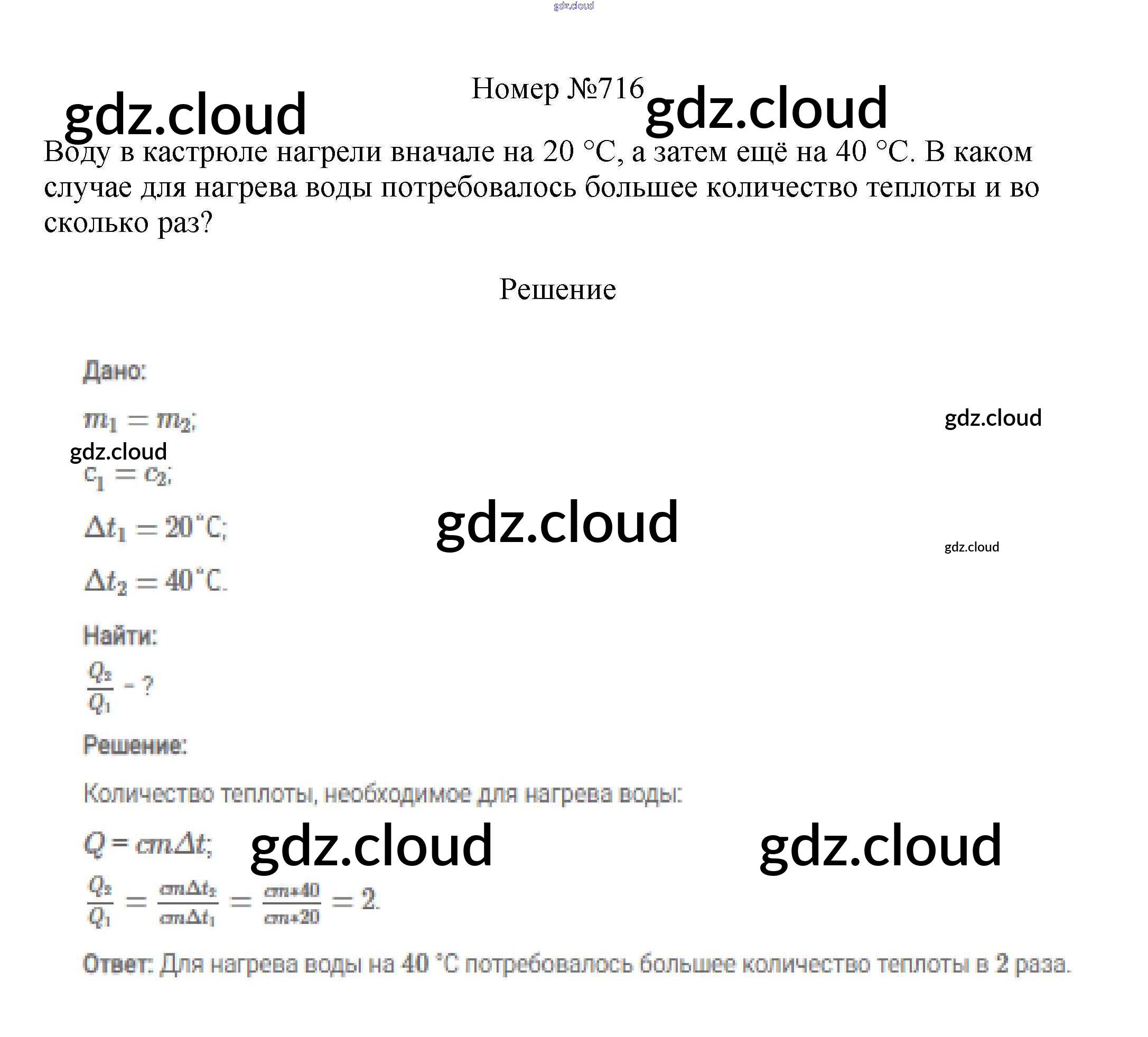 Ответ на задание 716 Сборник вопросов и задач Физика за 7, 8, 9 (седьмой, восьмой, девятый) класс Марон, Позойский Вертикаль 2013