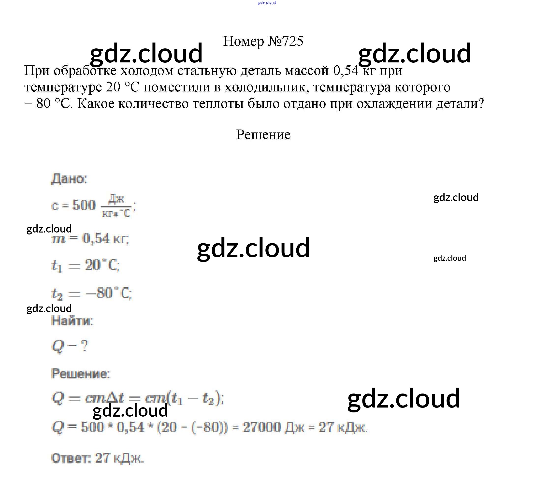 Ответ на задание 725 Сборник вопросов и задач Физика за 7, 8, 9 (седьмой, восьмой, девятый) класс Марон, Позойский Вертикаль 2013