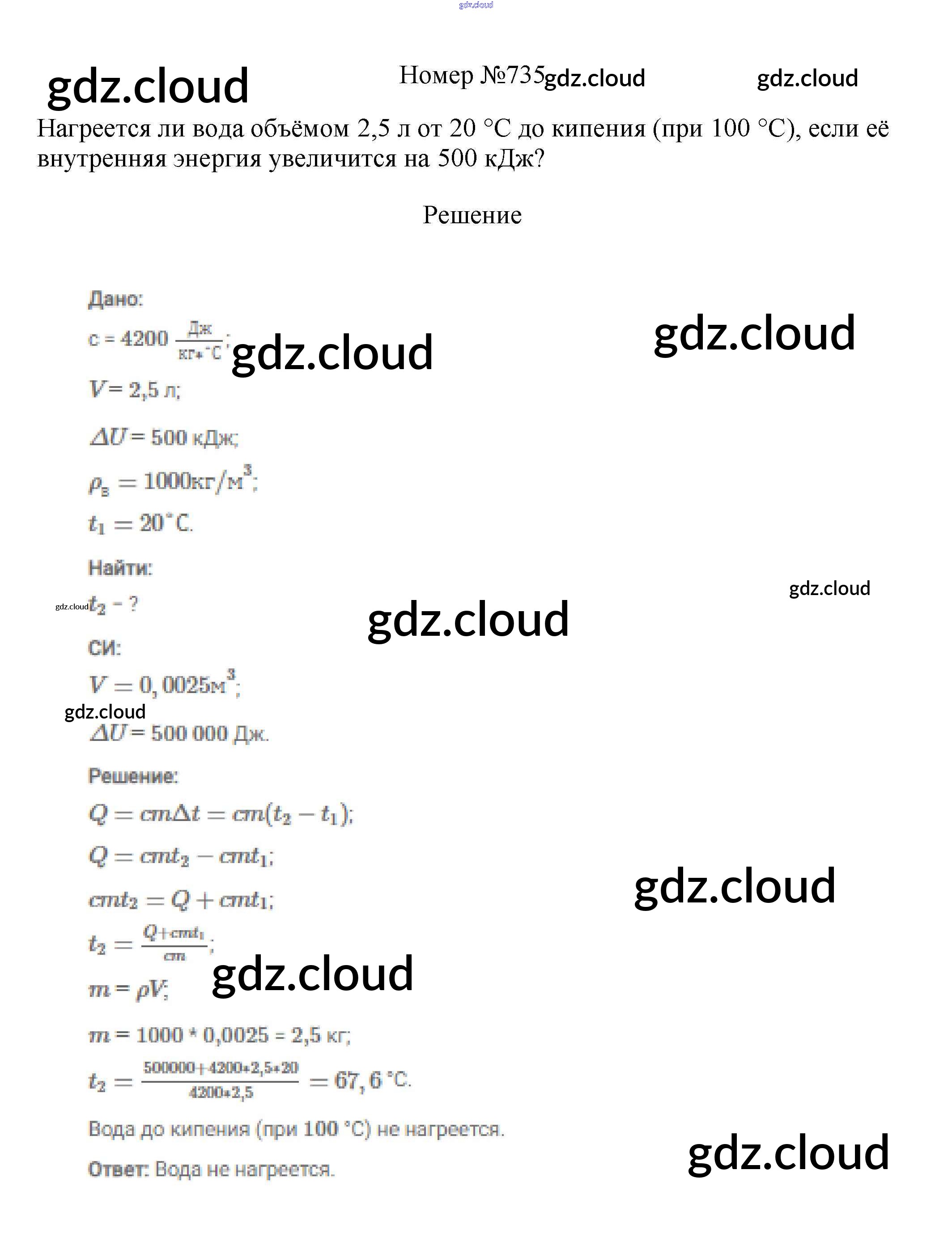 Ответ на задание 735 Сборник вопросов и задач Физика за 7, 8, 9 (седьмой, восьмой, девятый) класс Марон, Позойский Вертикаль 2013