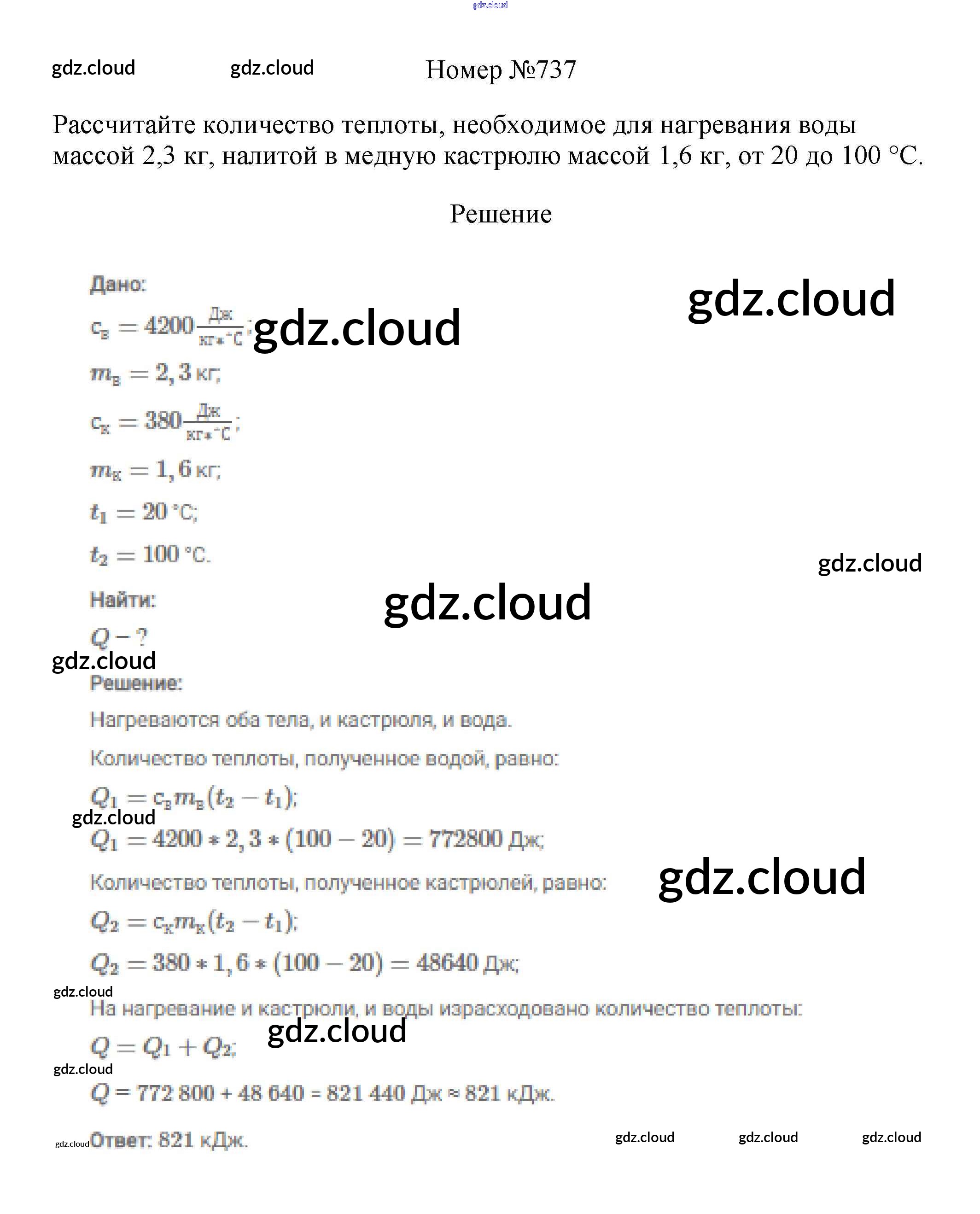 Ответ на задание 737 Сборник вопросов и задач Физика за 7, 8, 9 (седьмой, восьмой, девятый) класс Марон, Позойский Вертикаль 2013