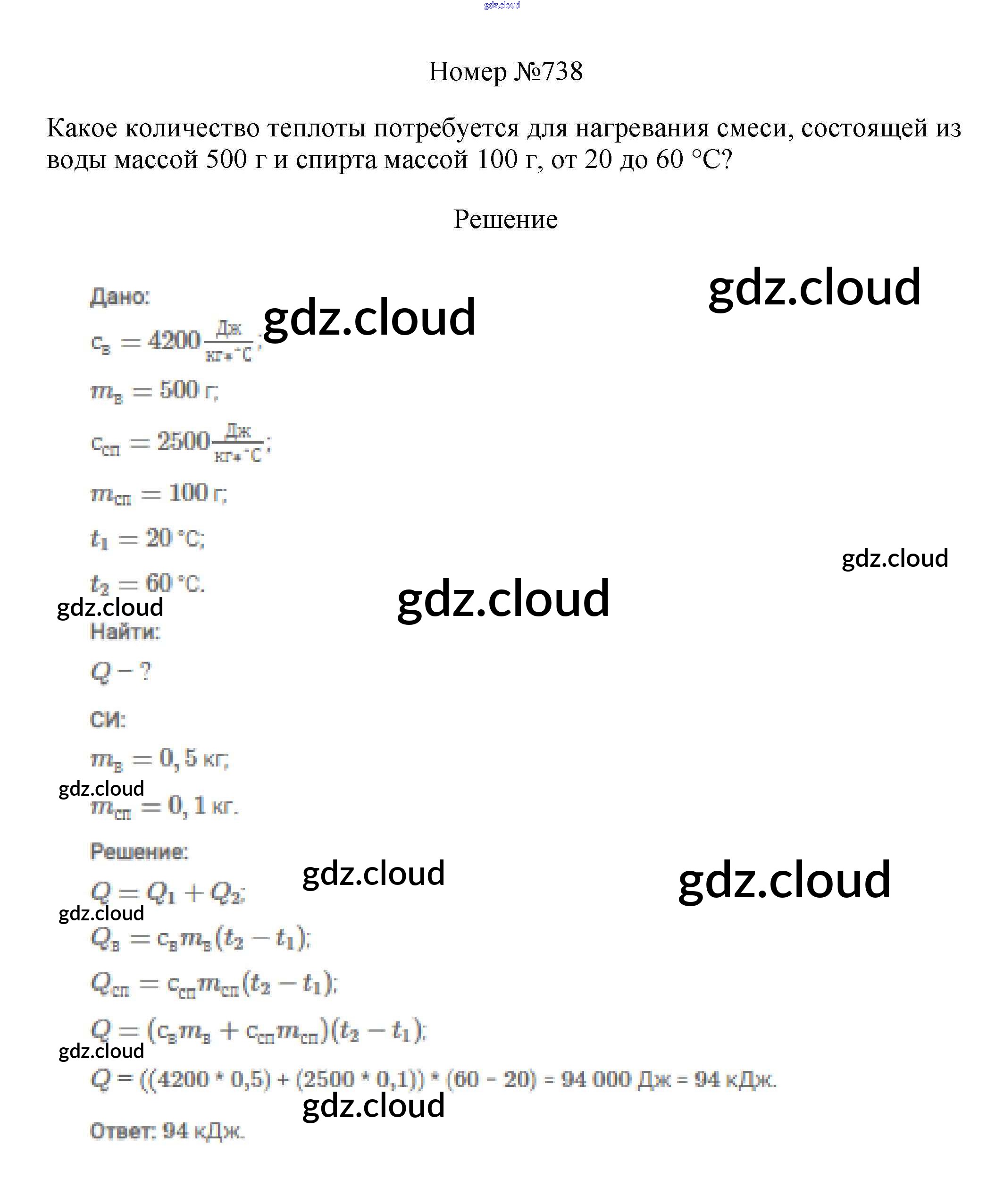 Ответ на задание 738 Сборник вопросов и задач Физика за 7, 8, 9 (седьмой, восьмой, девятый) класс Марон, Позойский Вертикаль 2013