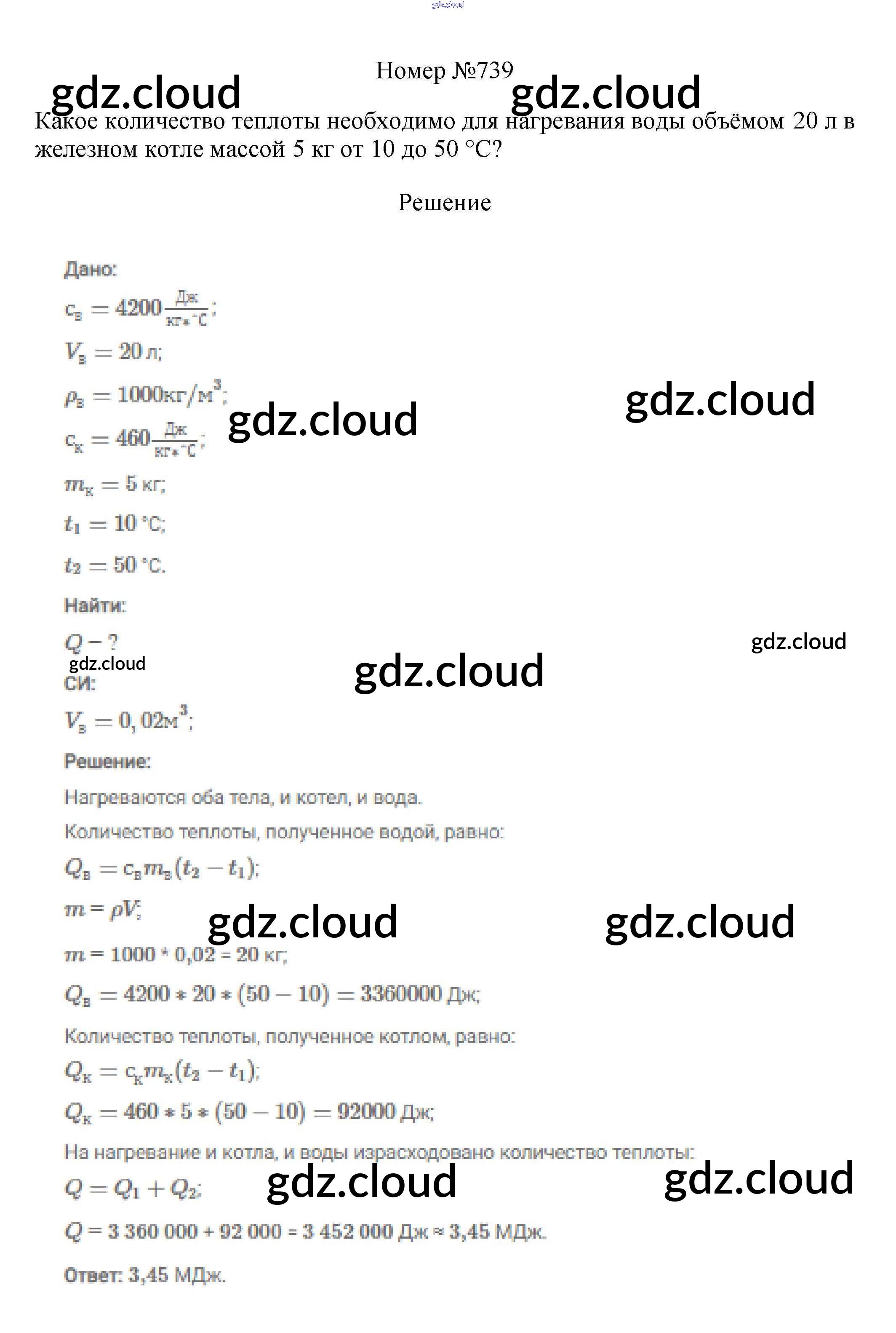 Ответ на задание 739 Сборник вопросов и задач Физика за 7, 8, 9 (седьмой, восьмой, девятый) класс Марон, Позойский Вертикаль 2013