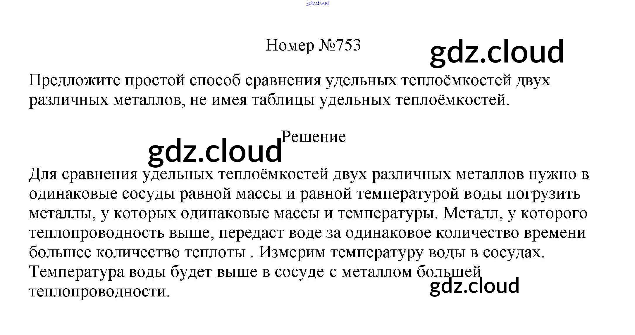 Ответ на задание 753 Сборник вопросов и задач Физика за 7, 8, 9 (седьмой, восьмой, девятый) класс Марон, Позойский Вертикаль 2013