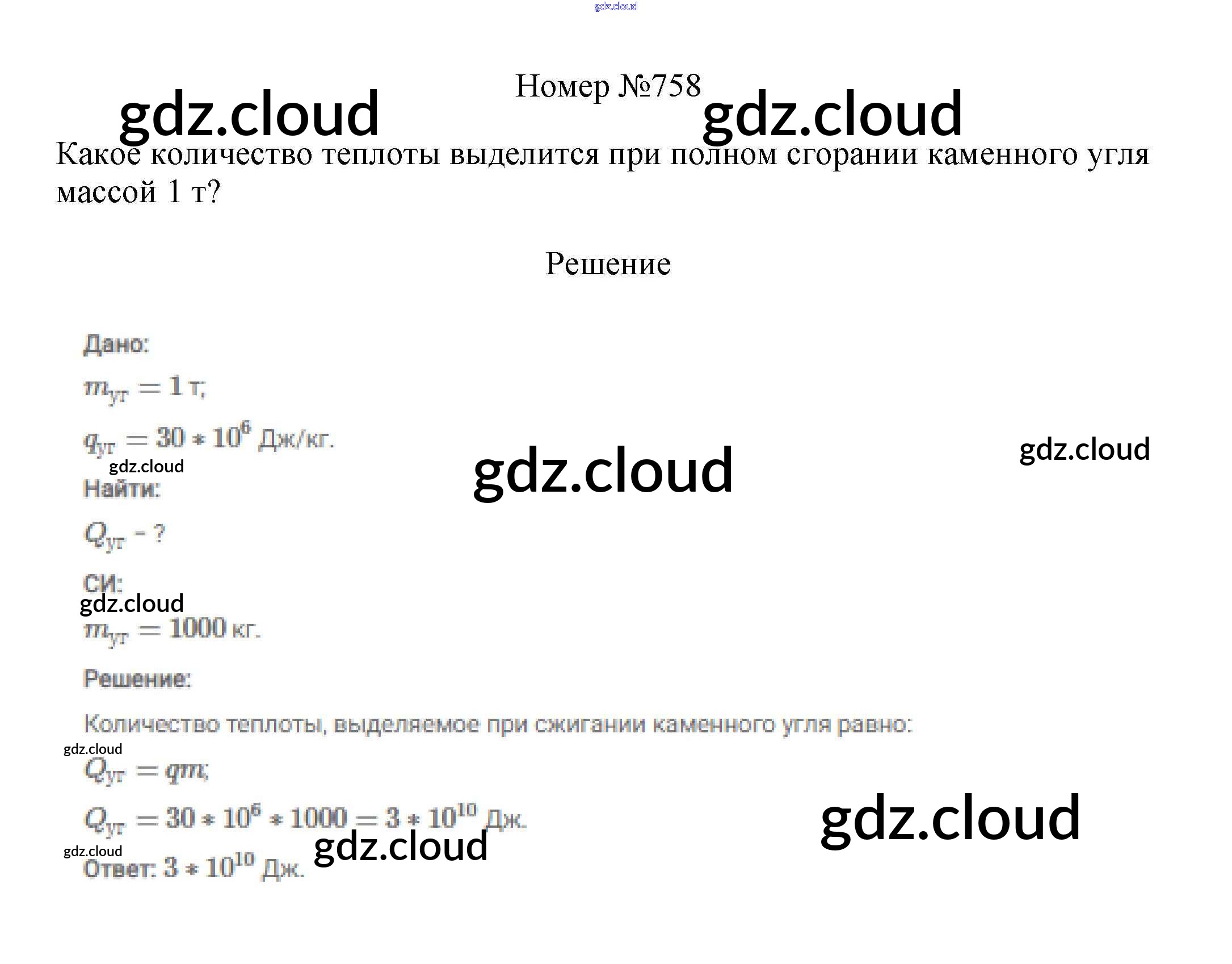 Ответ на задание 758 Сборник вопросов и задач Физика за 7, 8, 9 (седьмой, восьмой, девятый) класс Марон, Позойский Вертикаль 2013