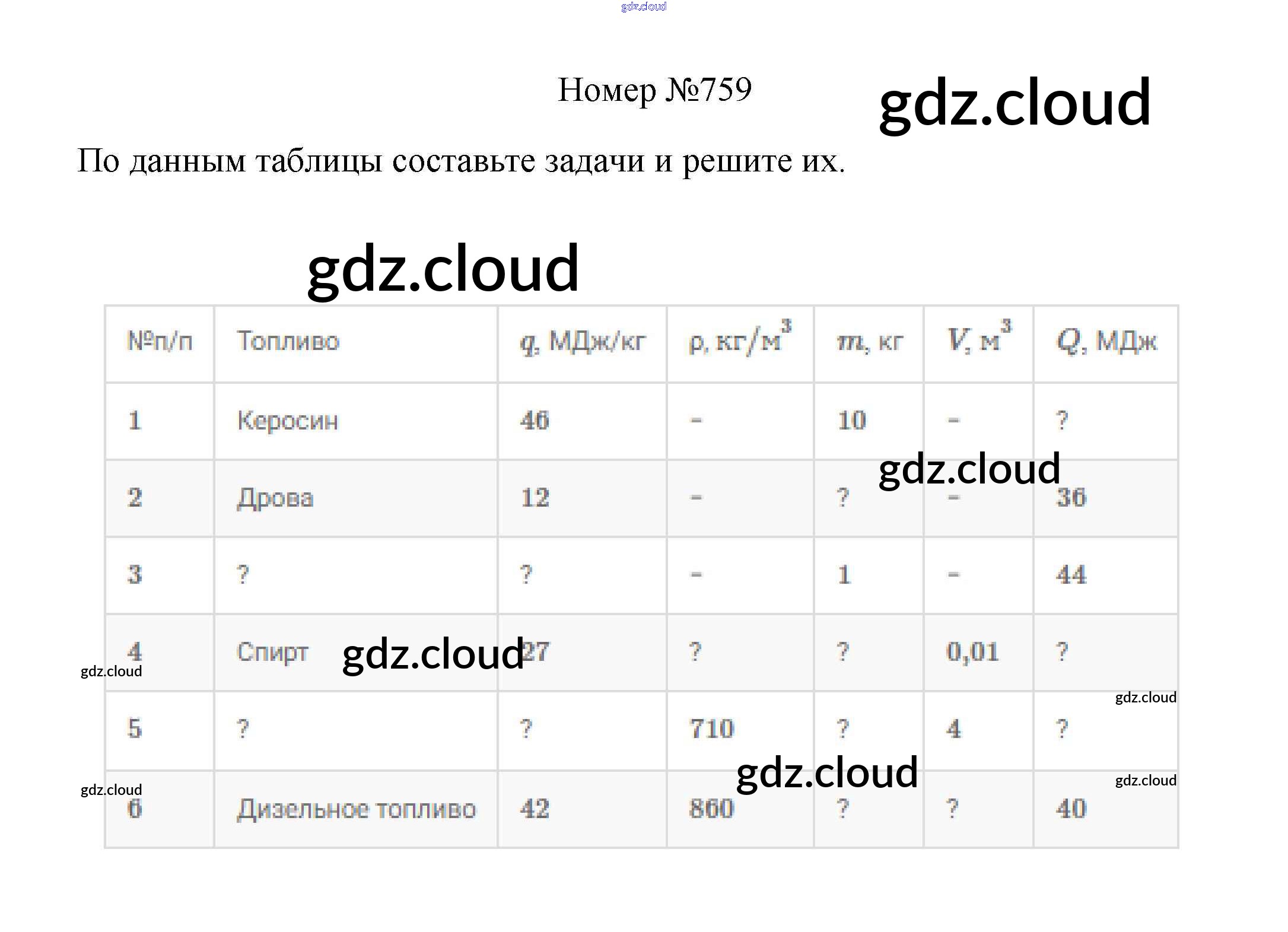 Ответ на задание 759 Сборник вопросов и задач Физика за 7, 8, 9 (седьмой, восьмой, девятый) класс Марон, Позойский Вертикаль 2013