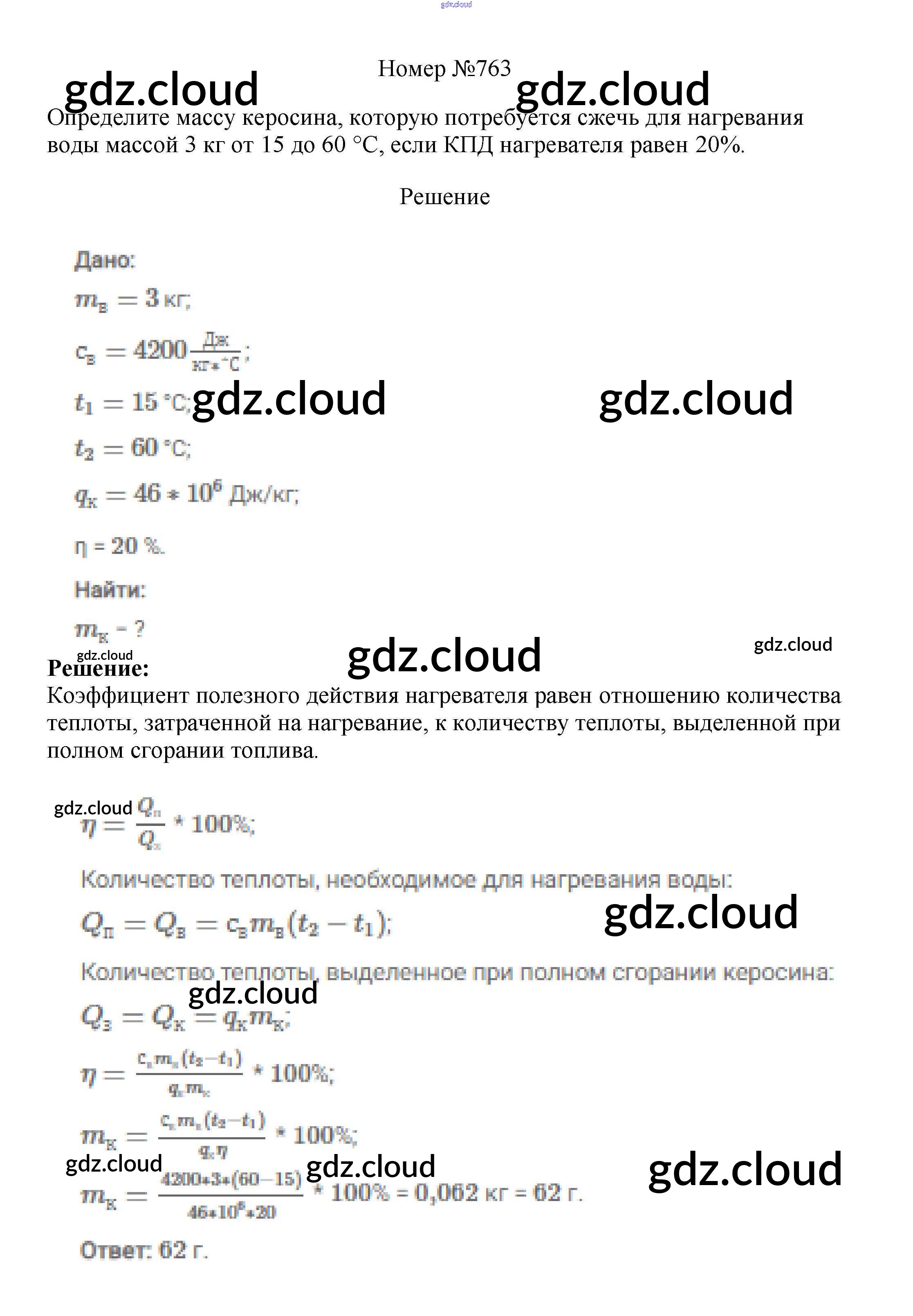 Ответ на задание 763 Сборник вопросов и задач Физика за 7, 8, 9 (седьмой, восьмой, девятый) класс Марон, Позойский Вертикаль 2013