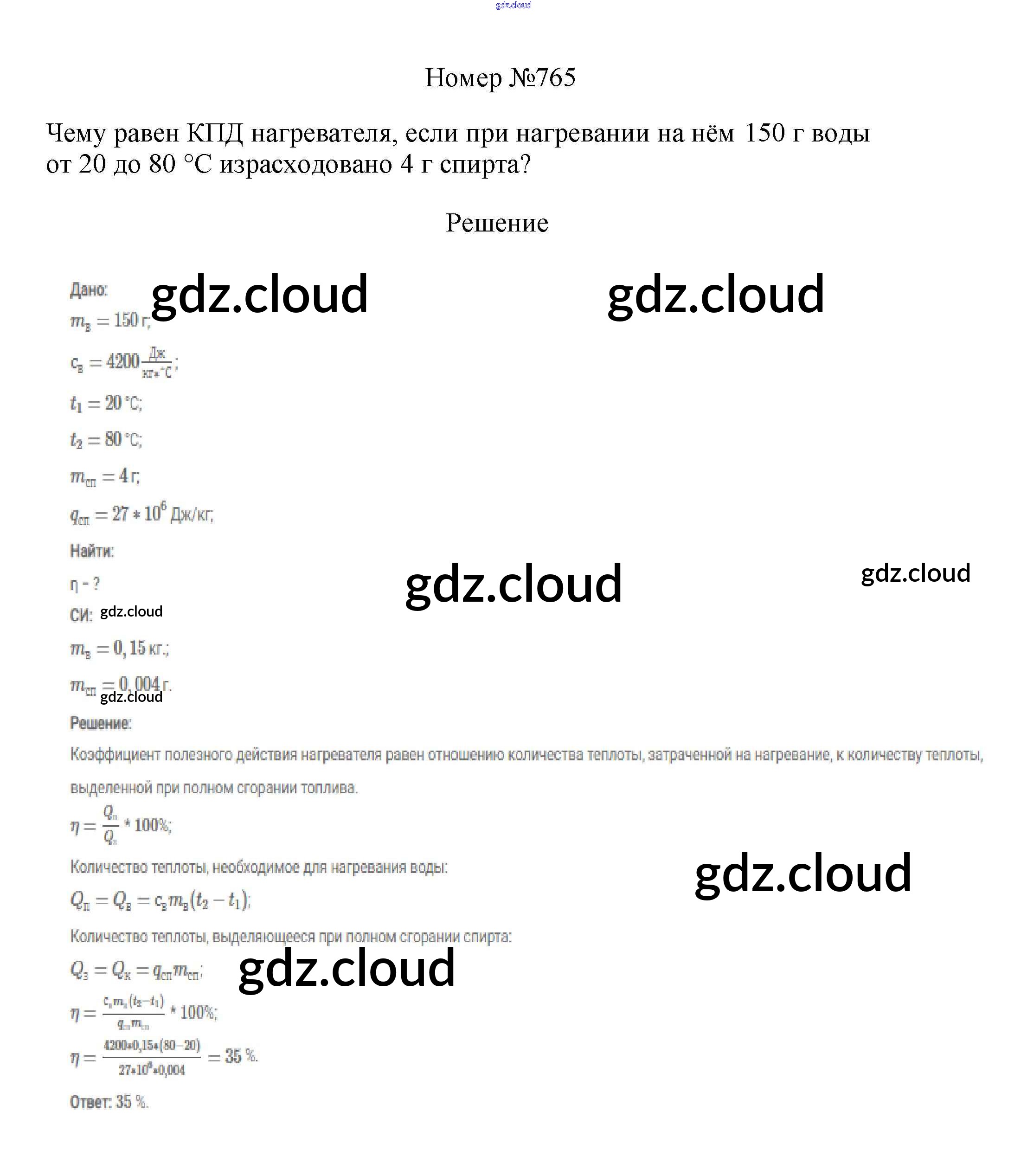 Ответ на задание 765 Сборник вопросов и задач Физика за 7, 8, 9 (седьмой, восьмой, девятый) класс Марон, Позойский Вертикаль 2013