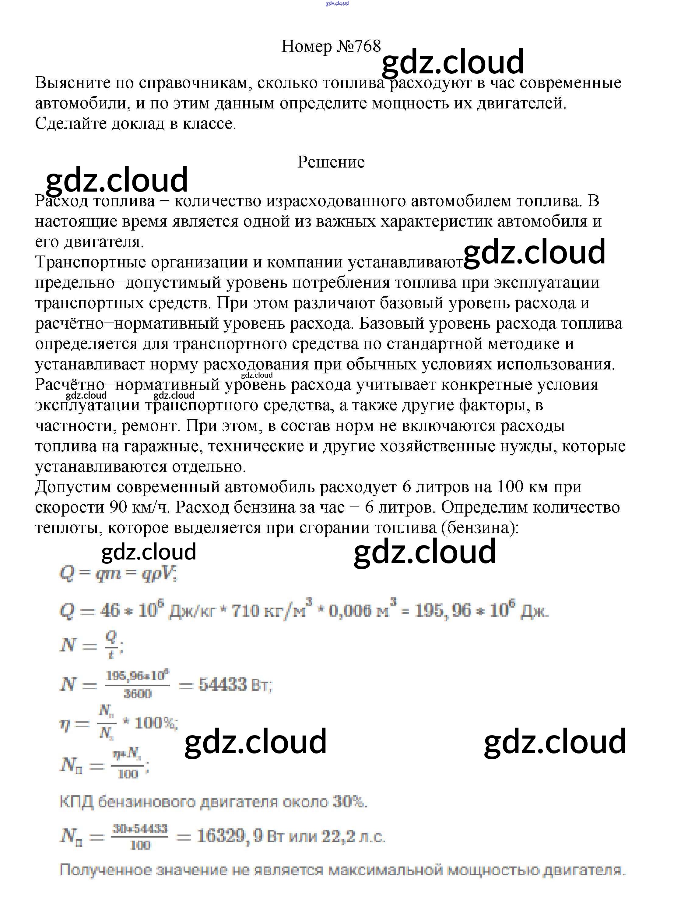Ответ на задание 768 Сборник вопросов и задач Физика за 7, 8, 9 (седьмой, восьмой, девятый) класс Марон, Позойский Вертикаль 2013
