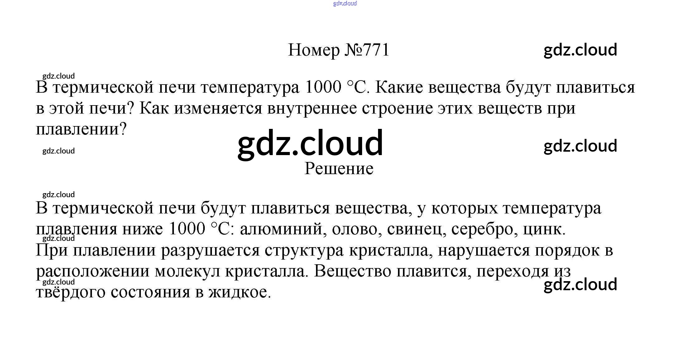 Ответ на задание 771 Сборник вопросов и задач Физика за 7, 8, 9 (седьмой, восьмой, девятый) класс Марон, Позойский Вертикаль 2013