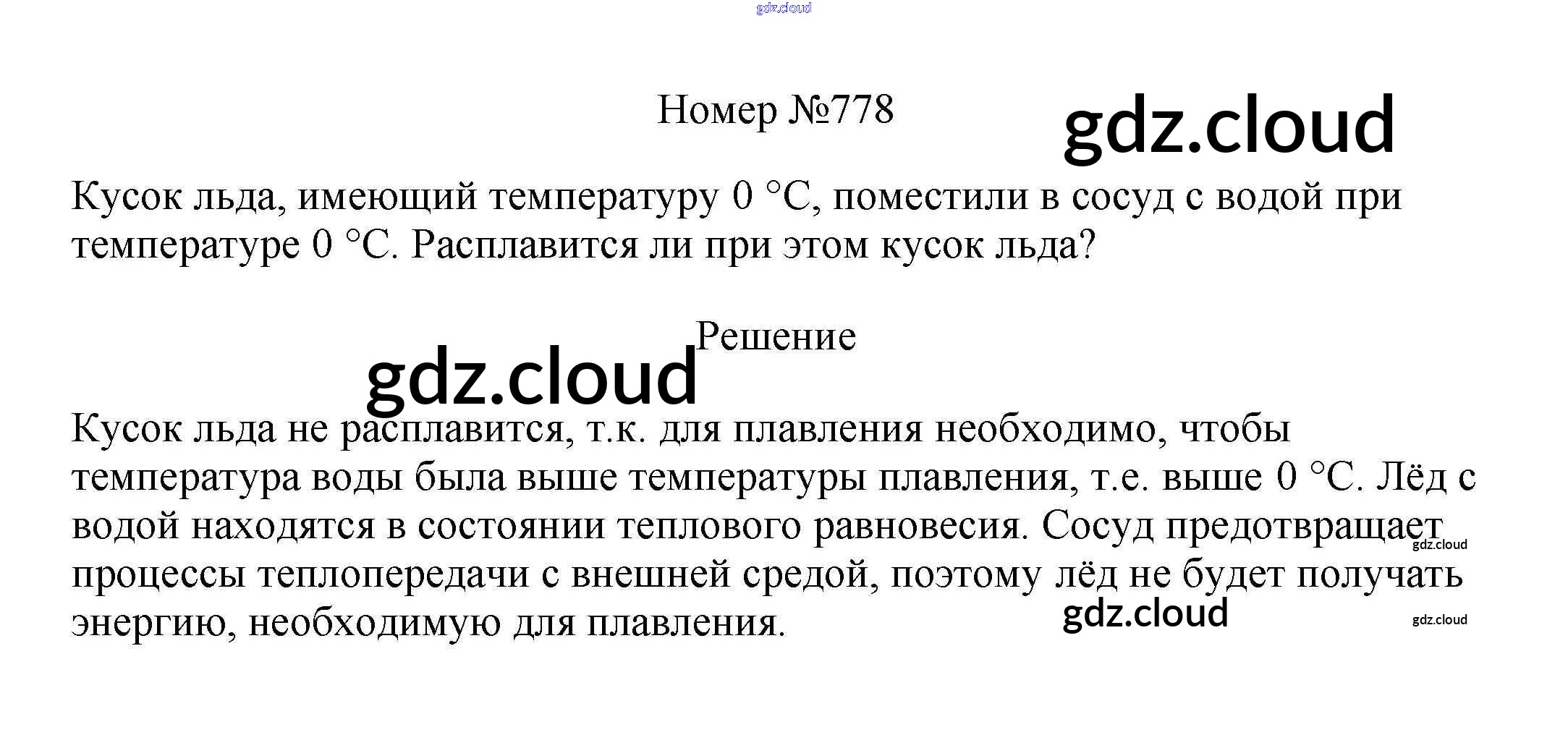 Ответ на задание 778 Сборник вопросов и задач Физика за 7, 8, 9 (седьмой, восьмой, девятый) класс Марон, Позойский Вертикаль 2013