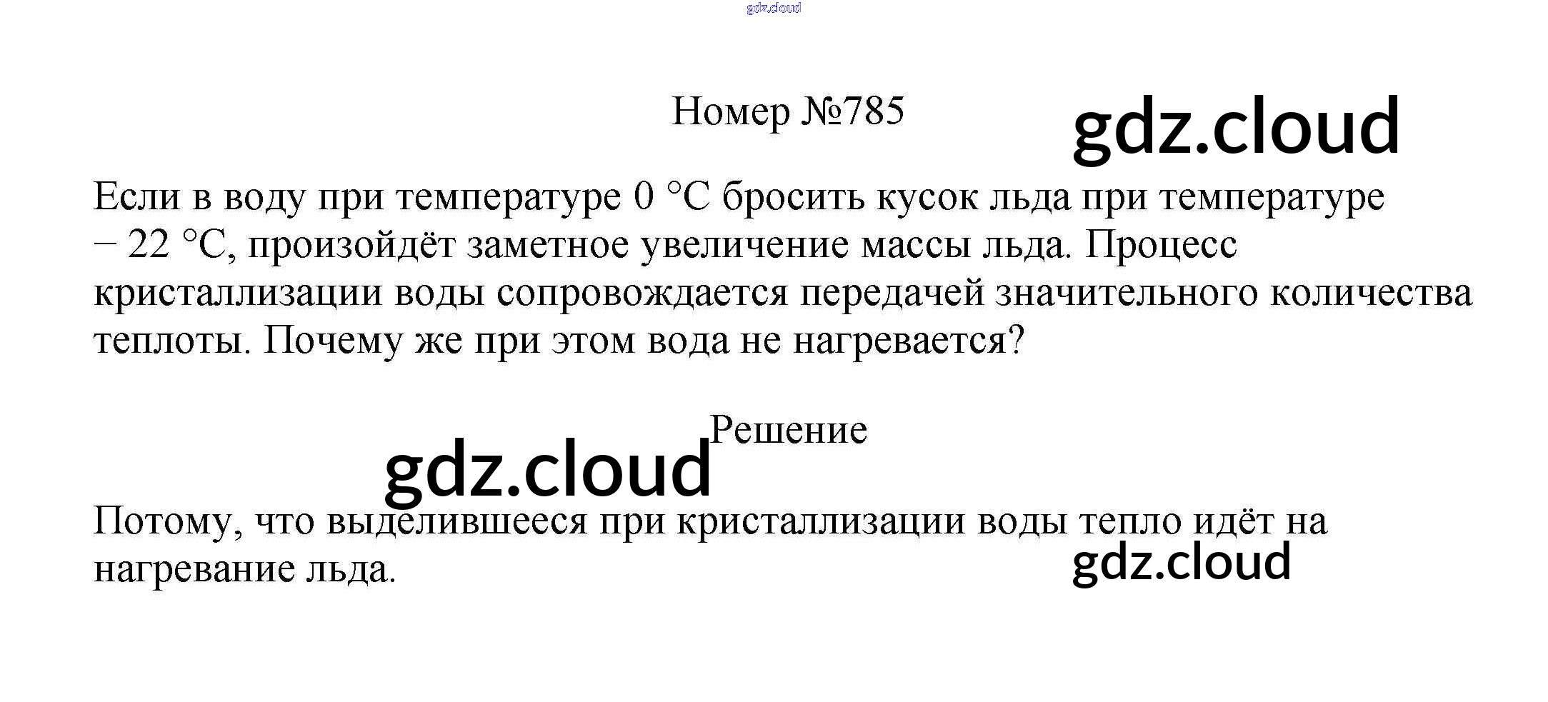 Ответ на задание 785 Сборник вопросов и задач Физика за 7, 8, 9 (седьмой, восьмой, девятый) класс Марон, Позойский Вертикаль 2013
