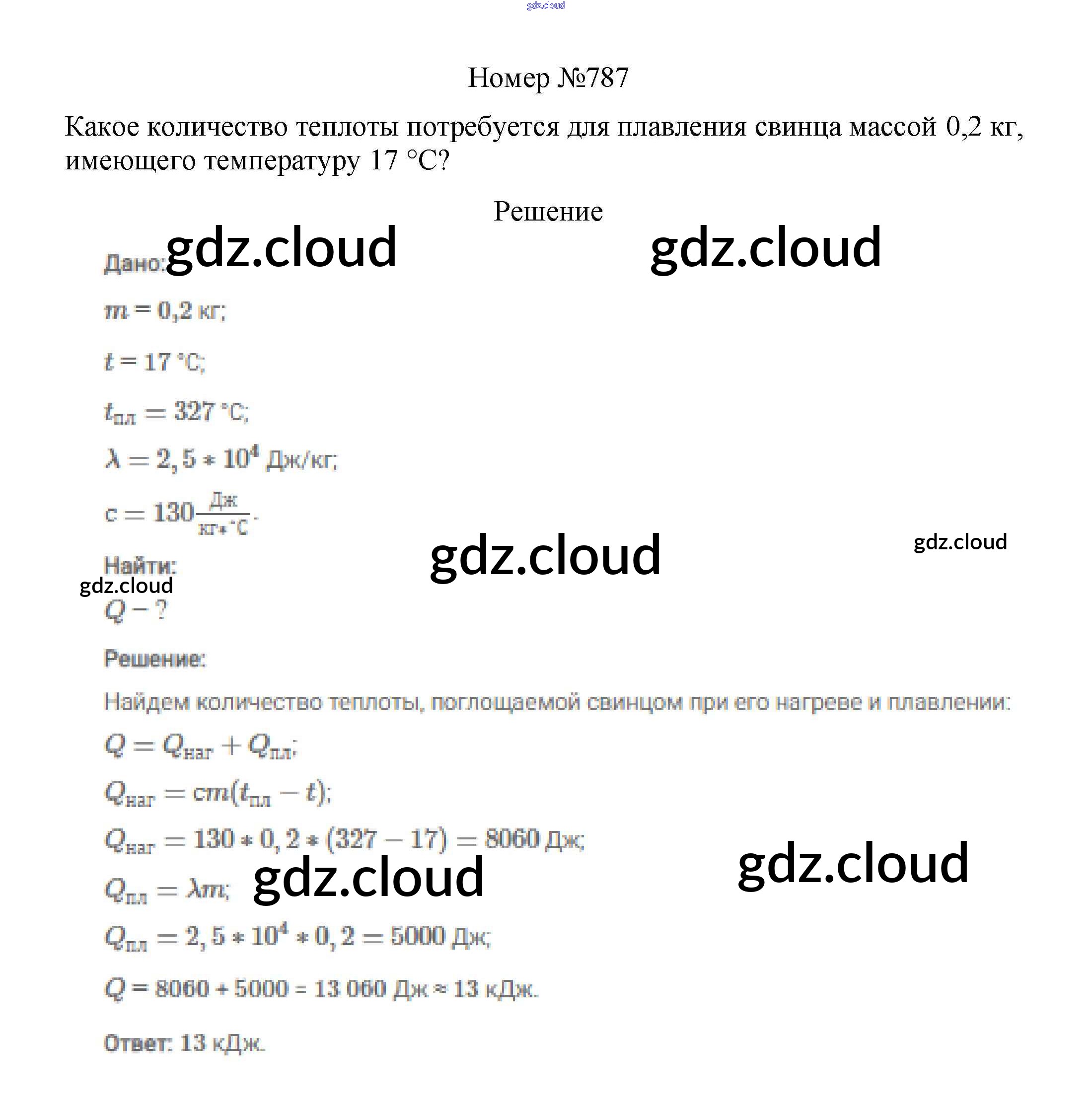 Ответ на задание 787 Сборник вопросов и задач Физика за 7, 8, 9 (седьмой, восьмой, девятый) класс Марон, Позойский Вертикаль 2013