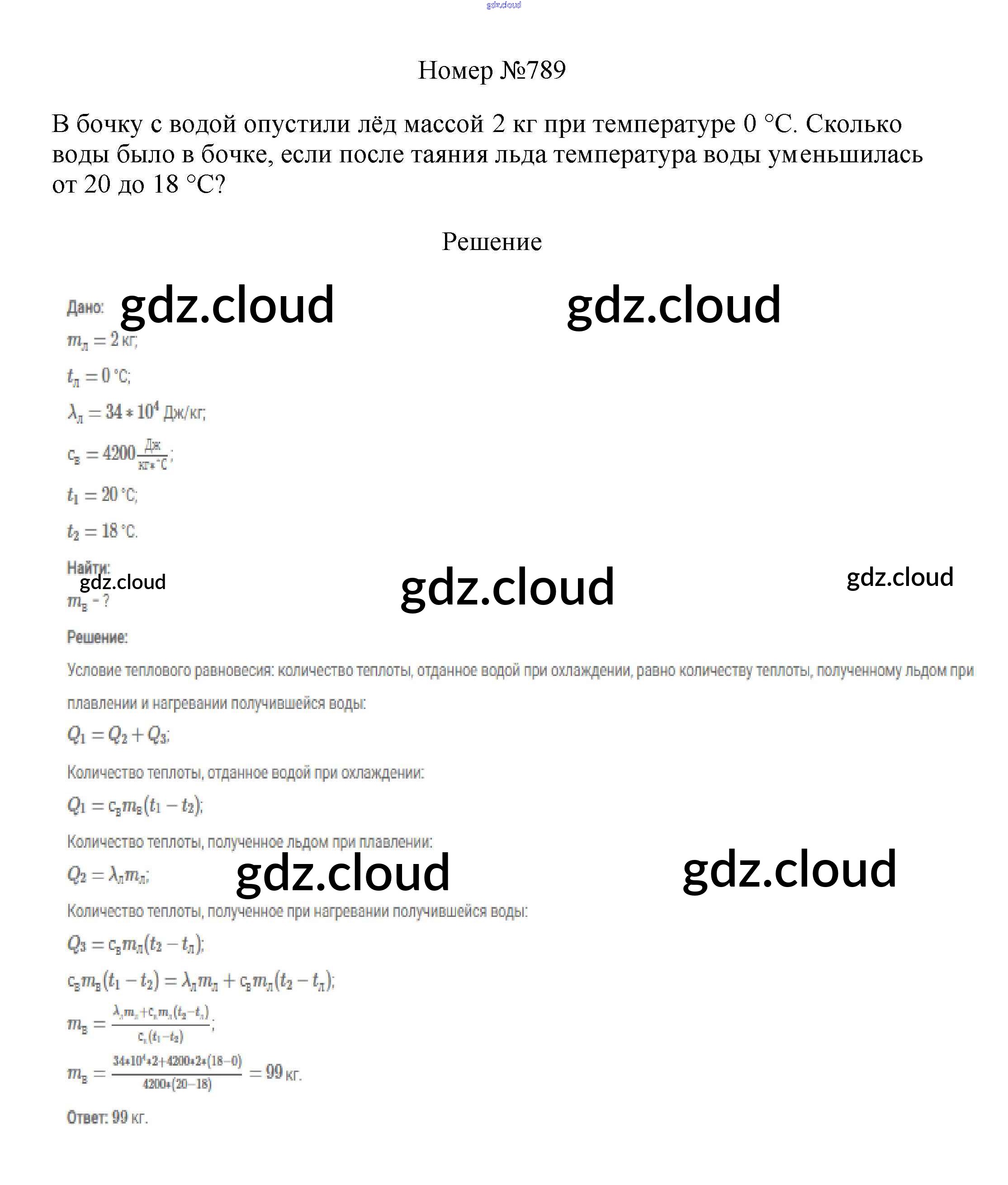 Ответ на задание 789 Сборник вопросов и задач Физика за 7, 8, 9 (седьмой, восьмой, девятый) класс Марон, Позойский Вертикаль 2013