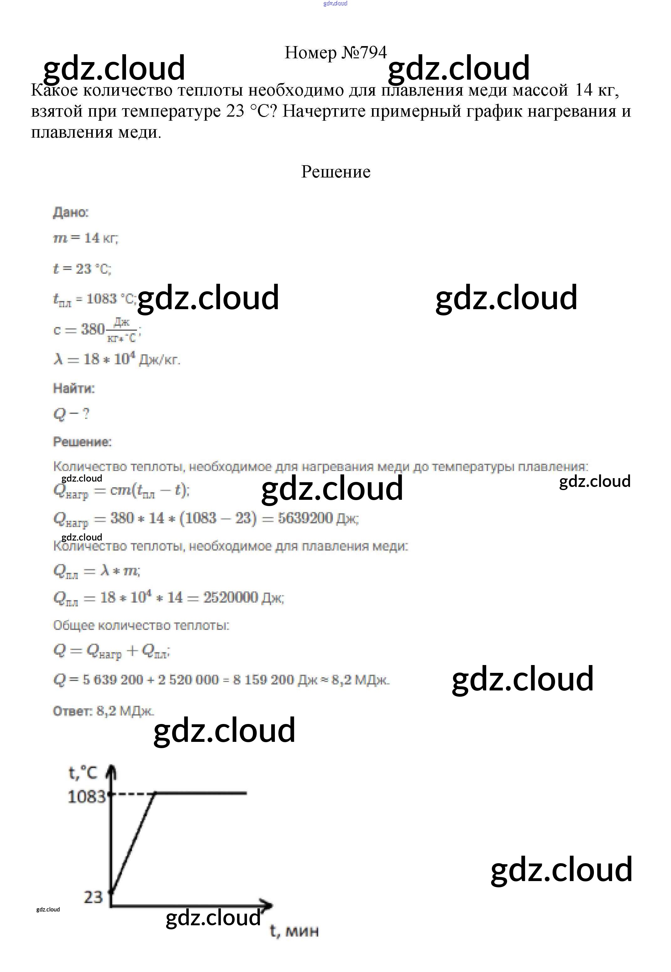 Ответ на задание 794 Сборник вопросов и задач Физика за 7, 8, 9 (седьмой, восьмой, девятый) класс Марон, Позойский Вертикаль 2013