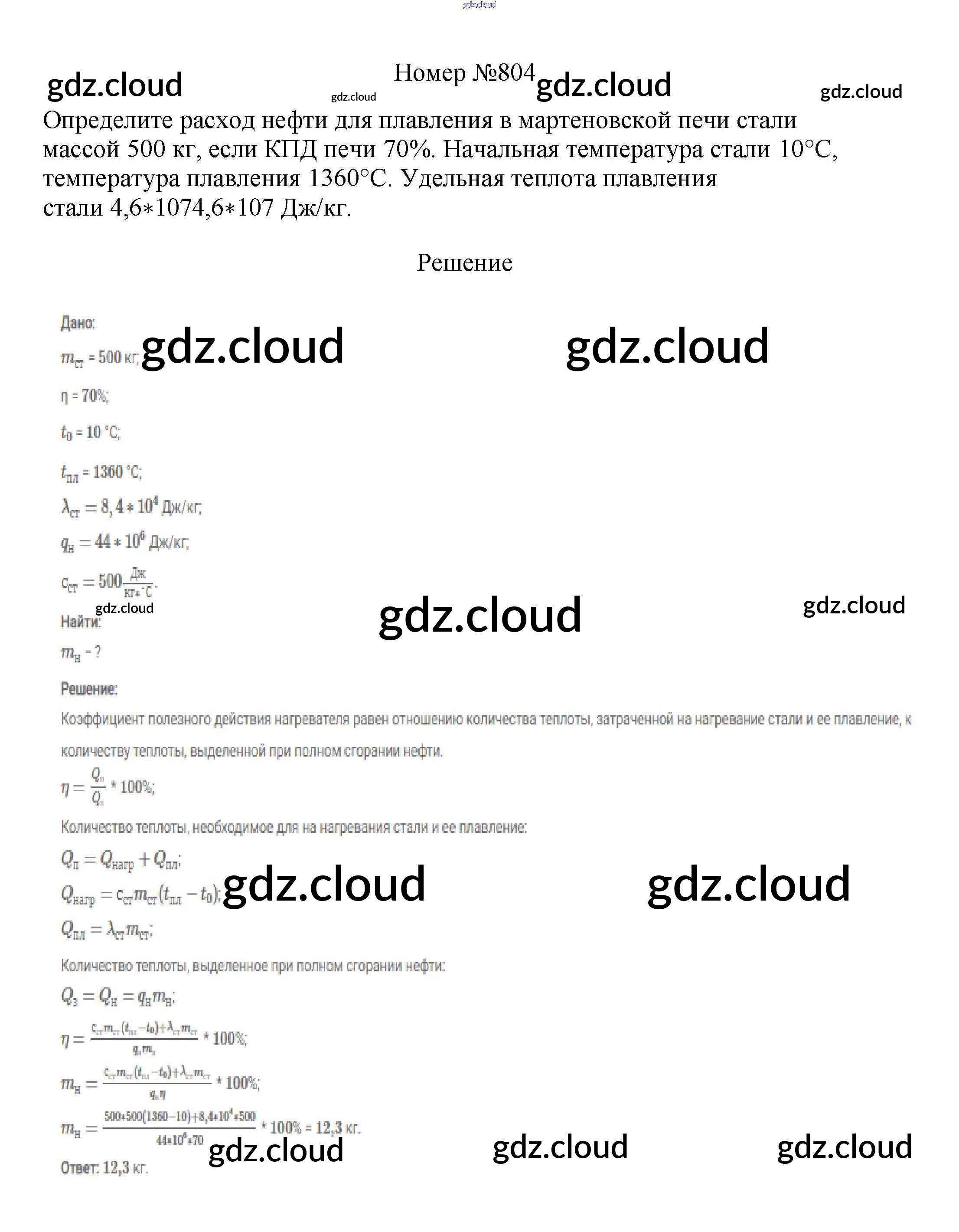 Ответ на задание 804 Сборник вопросов и задач Физика за 7, 8, 9 (седьмой, восьмой, девятый) класс Марон, Позойский Вертикаль 2013