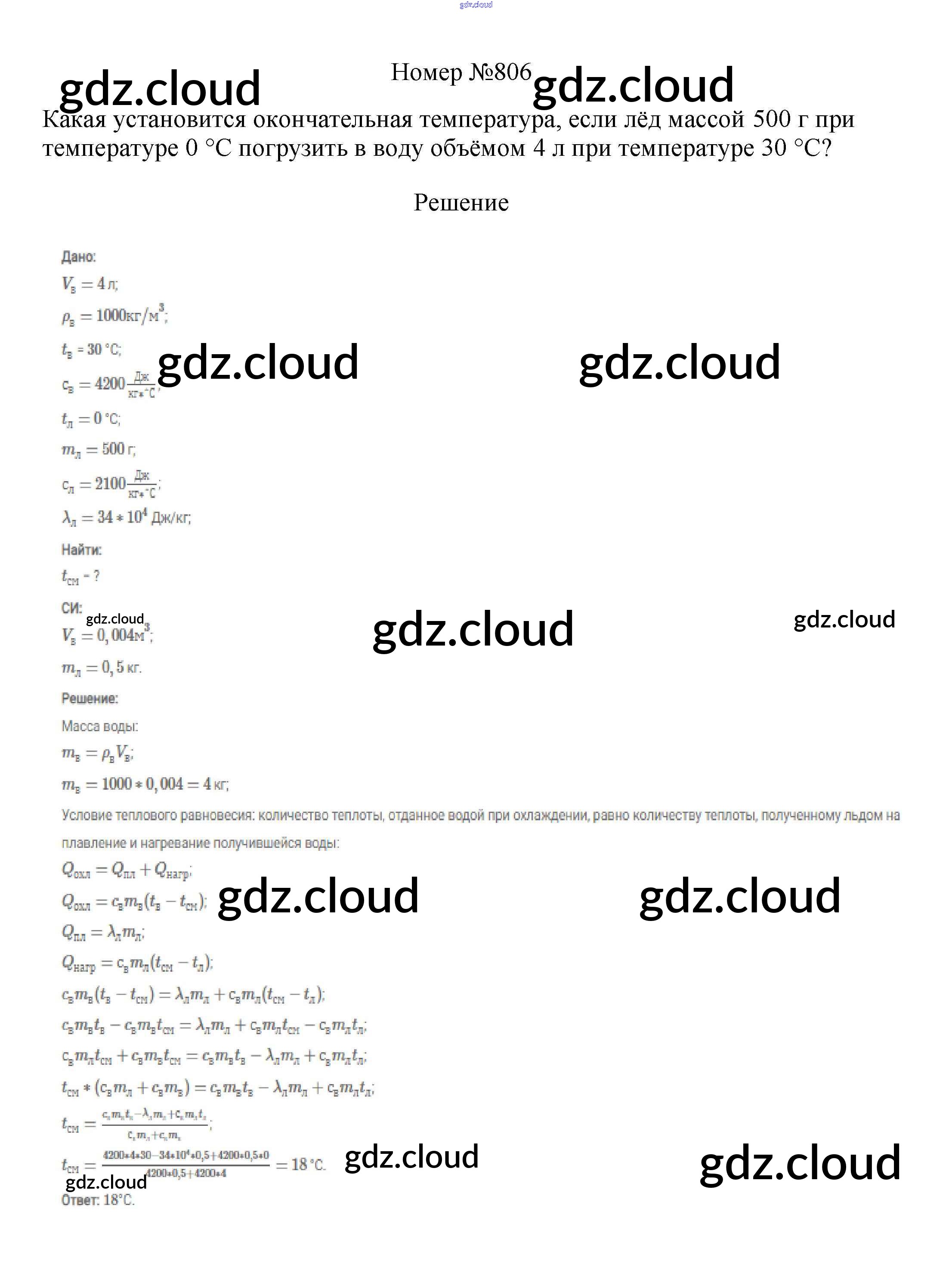 Ответ на задание 806 Сборник вопросов и задач Физика за 7, 8, 9 (седьмой, восьмой, девятый) класс Марон, Позойский Вертикаль 2013