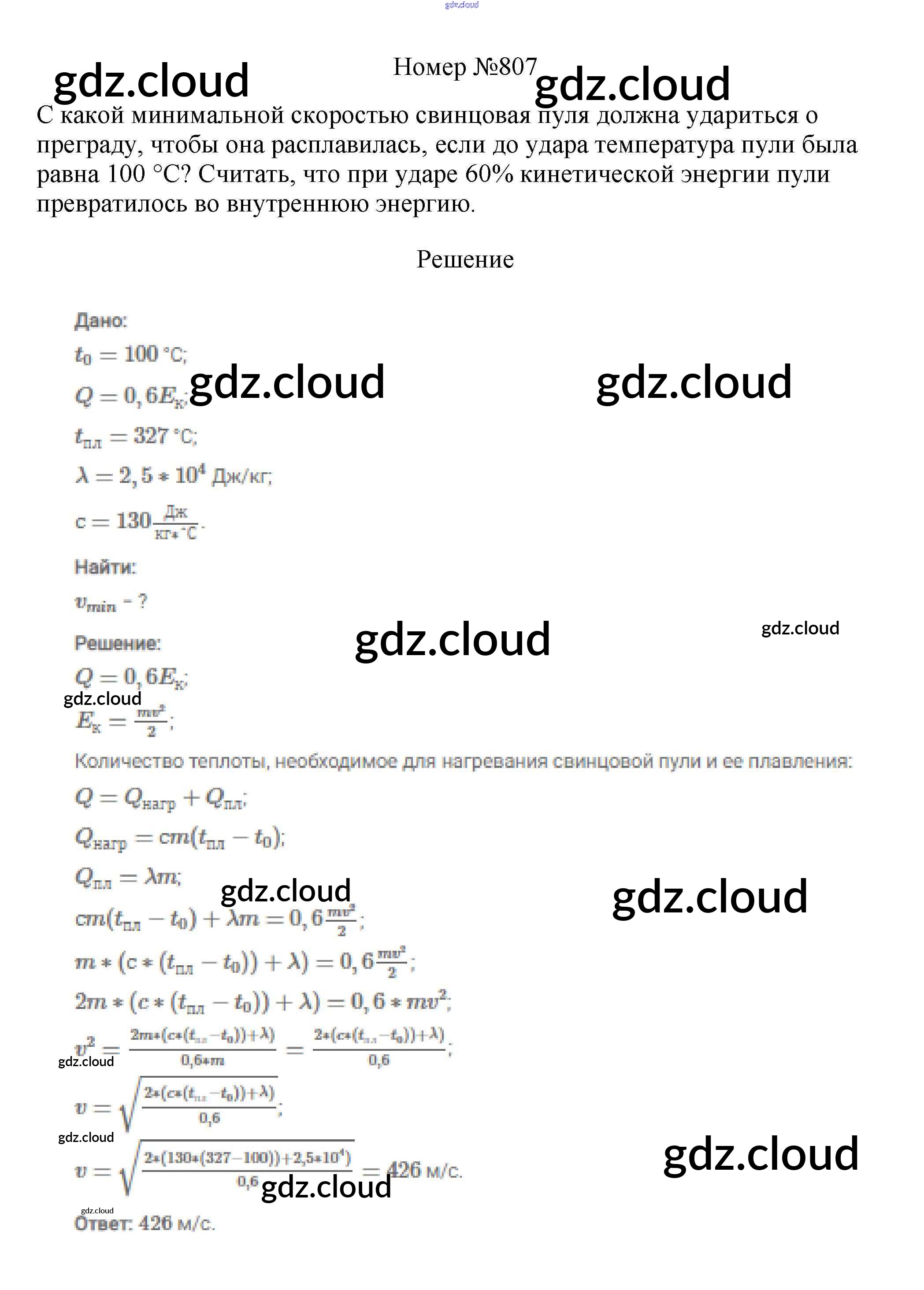Ответ на задание 807 Сборник вопросов и задач Физика за 7, 8, 9 (седьмой, восьмой, девятый) класс Марон, Позойский Вертикаль 2013
