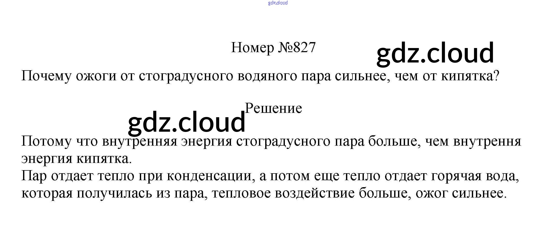 Ответ на задание 827 Сборник вопросов и задач Физика за 7, 8, 9 (седьмой, восьмой, девятый) класс Марон, Позойский Вертикаль 2013