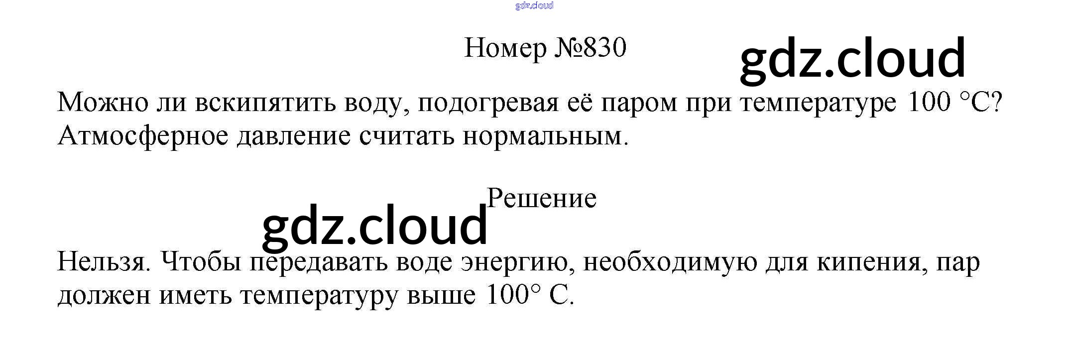 Ответ на задание 830 Сборник вопросов и задач Физика за 7, 8, 9 (седьмой, восьмой, девятый) класс Марон, Позойский Вертикаль 2013