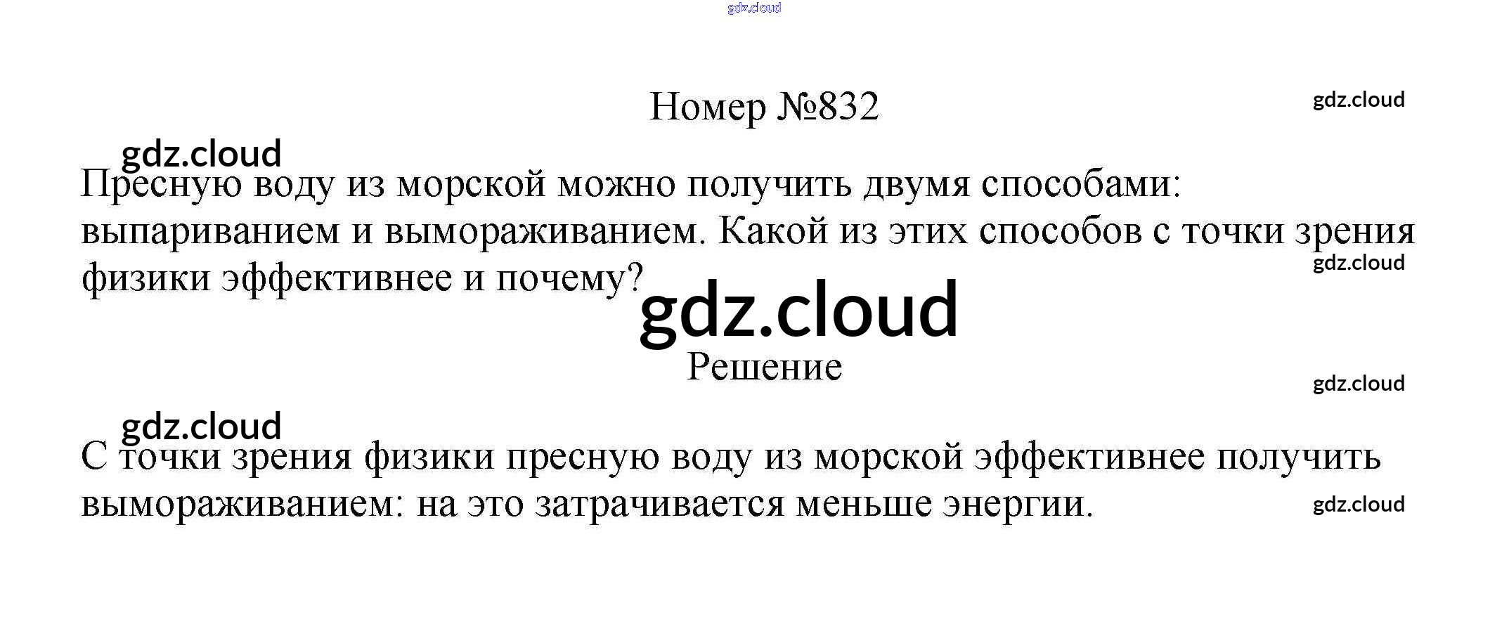 Ответ на задание 832 Сборник вопросов и задач Физика за 7, 8, 9 (седьмой, восьмой, девятый) класс Марон, Позойский Вертикаль 2013