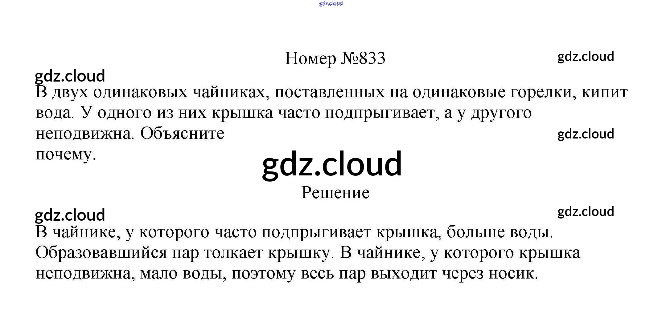 Ответ на задание 833 Сборник вопросов и задач Физика за 7, 8, 9 (седьмой, восьмой, девятый) класс Марон, Позойский Вертикаль 2013