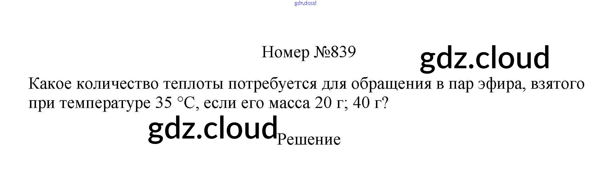 Ответ на задание 839 Сборник вопросов и задач Физика за 7, 8, 9 (седьмой, восьмой, девятый) класс Марон, Позойский Вертикаль 2013